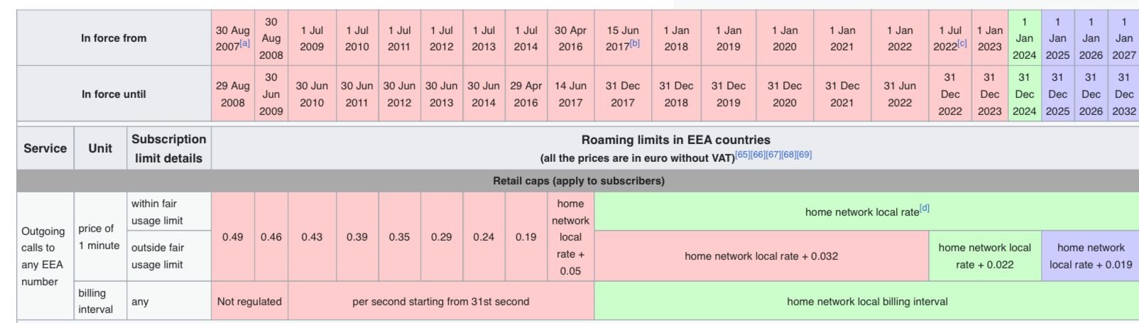 https://en.wikipedia.org/wiki/Europe...ng_regulations seems to show that roaming calls are regulated, too. |