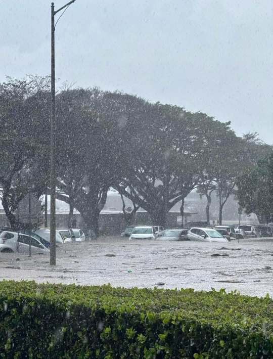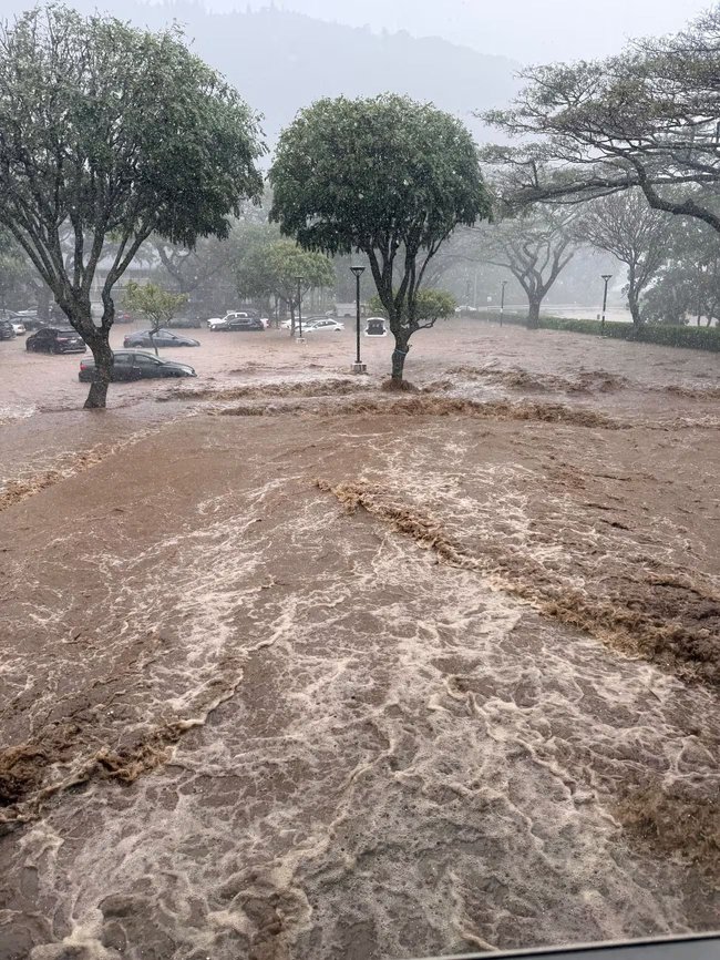 Reports have it that cars are floating down the street on Woodlawn Drive in Manoa.