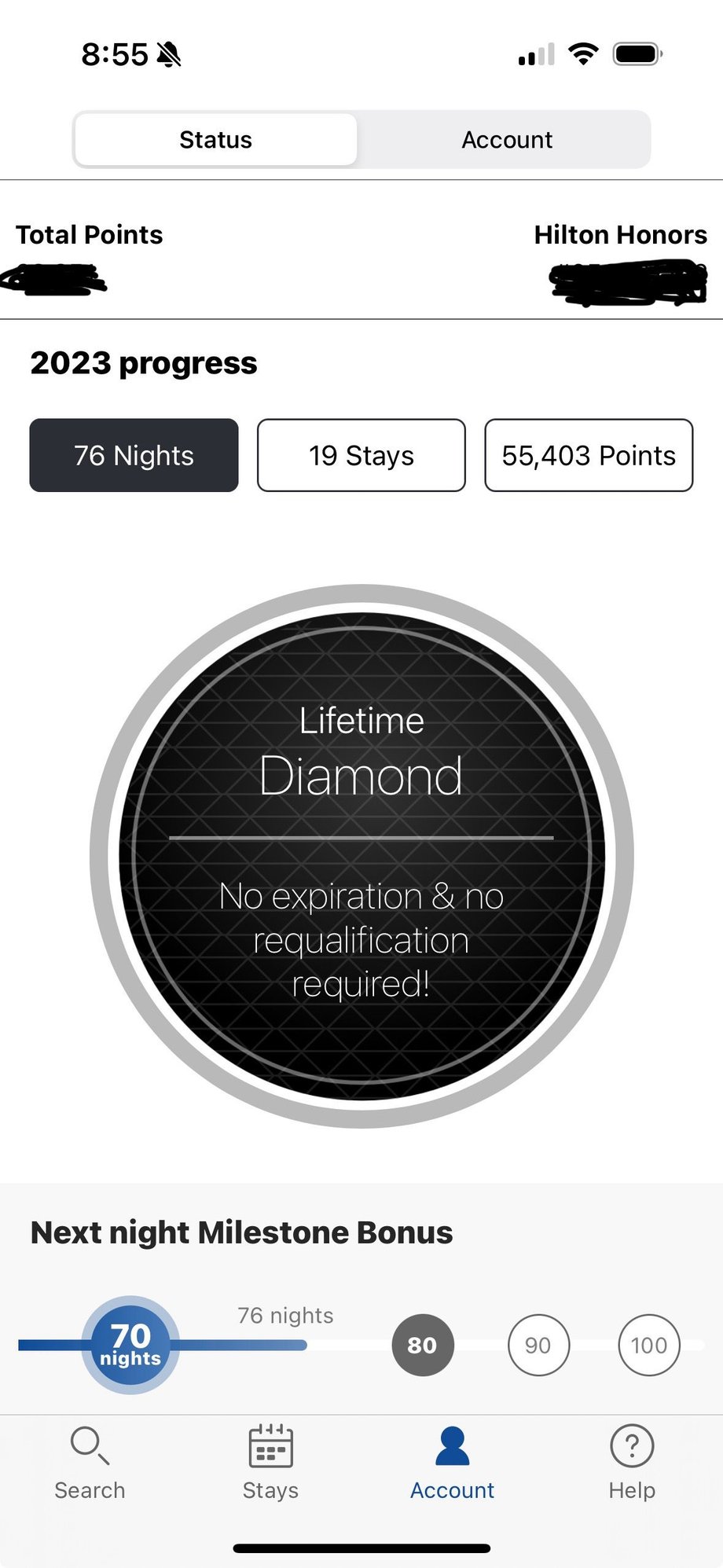 As a further "properties don't know the 'Lifetime' part of LTD unless they go digging" datapoint -- the room TV thing that has been rolling out to US Hamptons/HGIs/Homewoods (not sure if it's intended to cover the full portfolio of brands eventually or just the lower tiers) now includes Honors status in the messaging but omits the Lifetime designation...
