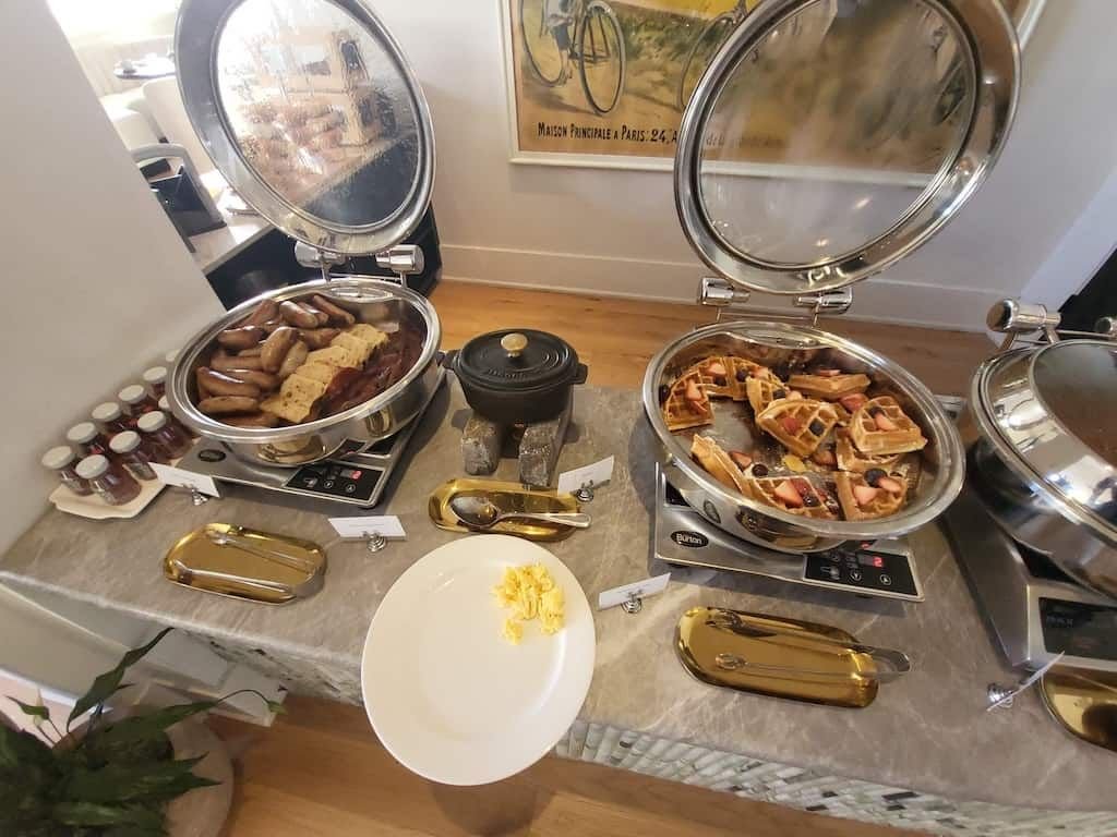 That toilet seat is just hideous, and I find it hilarious that they managed to stick all of the hot food options in one chafing dish - wouldn’t want to get out another! Think of the money they are saving!