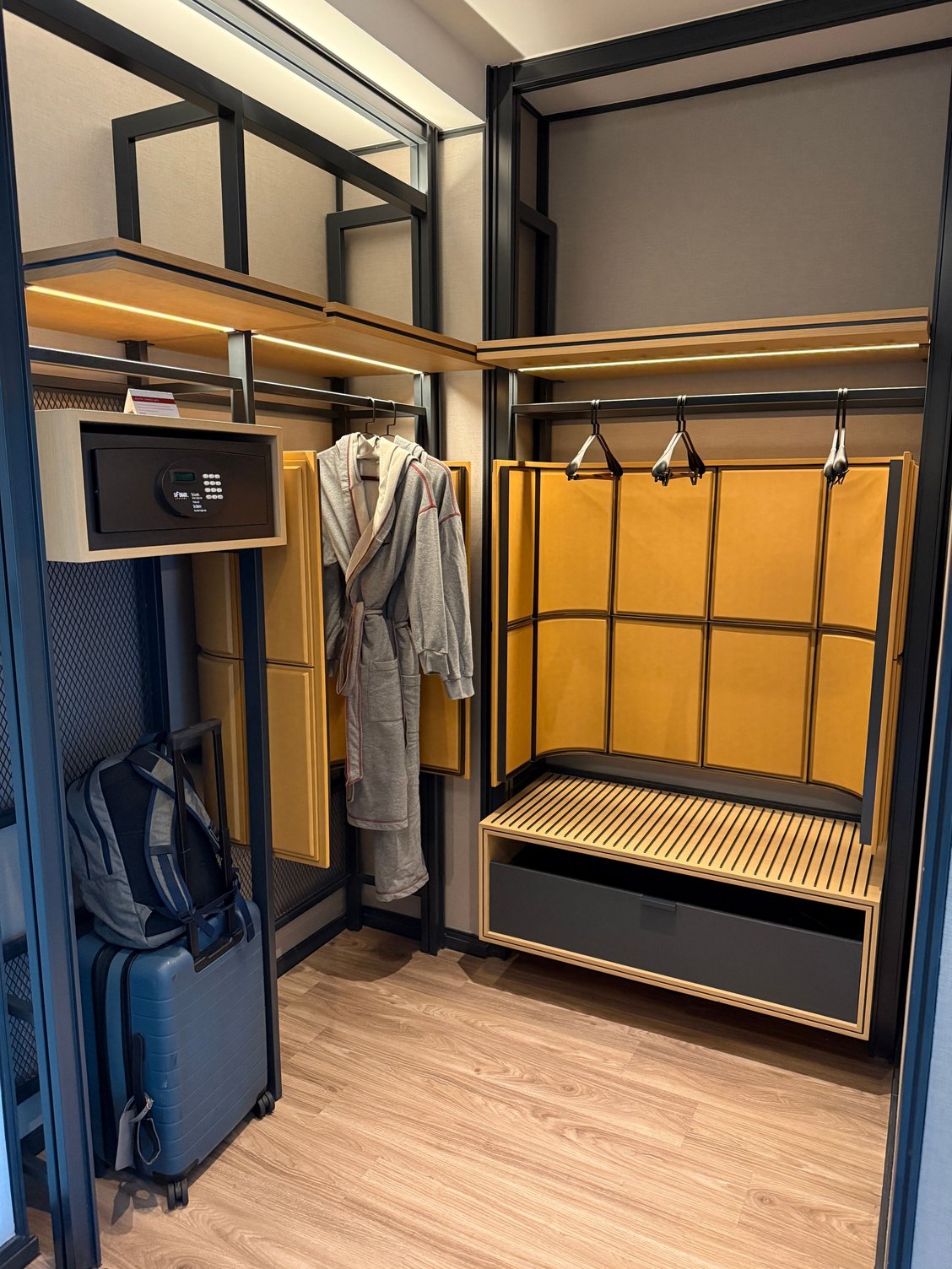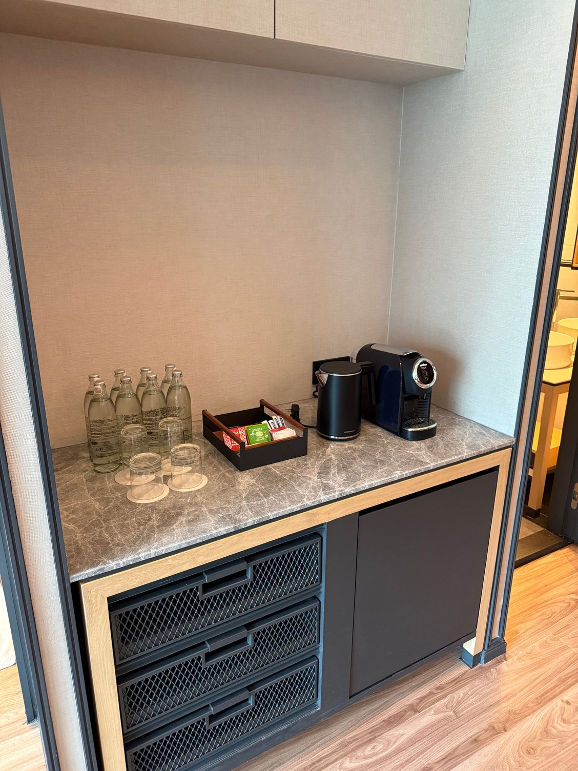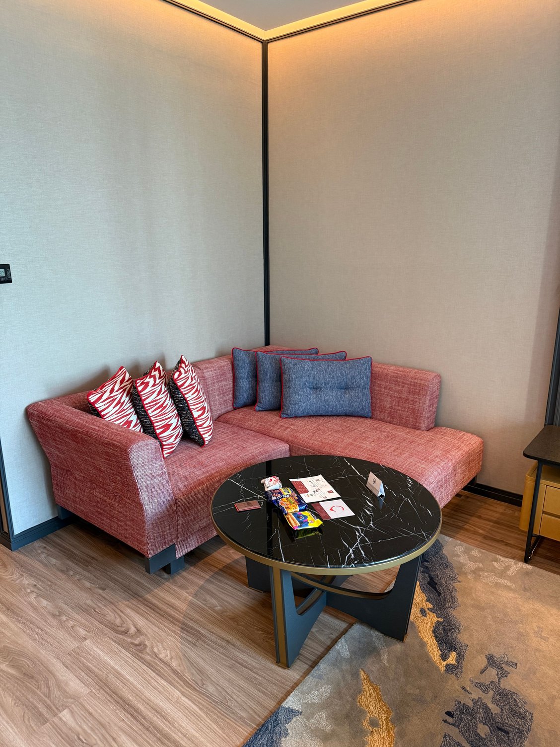 The room is a spacious studio style but very well thought out and no issues for a long stay at all. The public spaces are also very upscale.