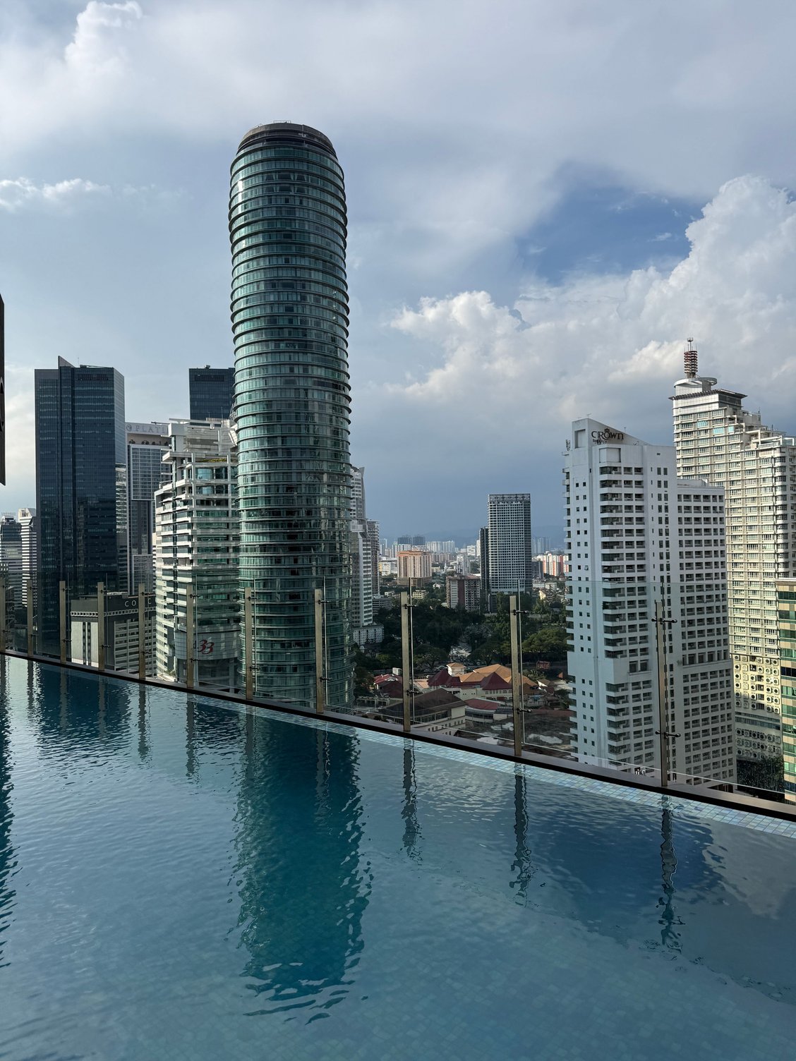 - The rooftop pool on the 21st floor is lovely, with an infinity edge overlooking the Petronas Towers, KLCC and the urban landscape around the hotel. There are no locker rooms or a dedicated spa, with the bathrooms serving as the changing area and showers for both the gym and pool.