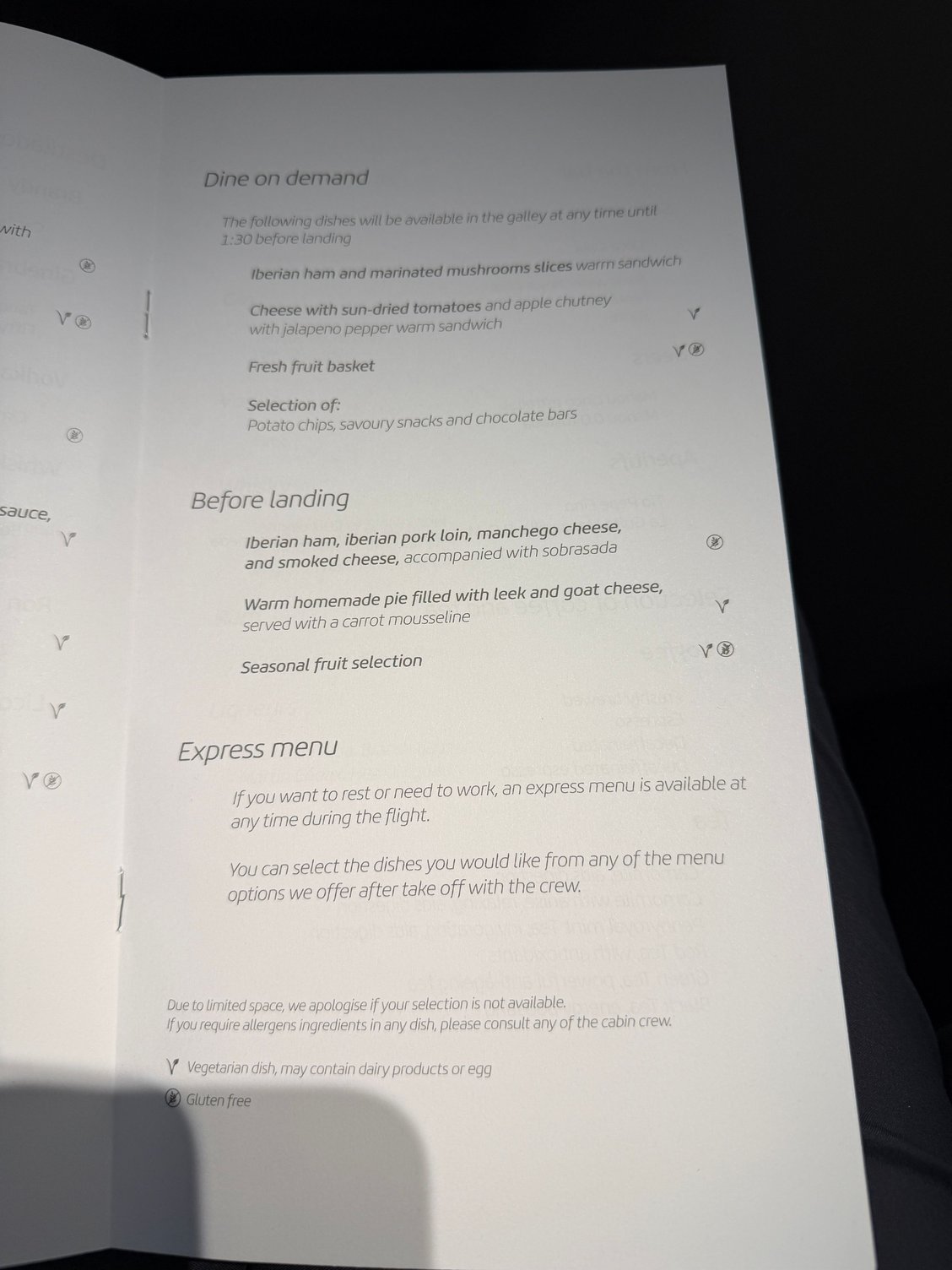 Can someone share details how is the catering with IBX on MAD-AGP -route. Thinking about upgrading, but if its just coffee and a chocolate bar and not freee middle seat, then not worth it.