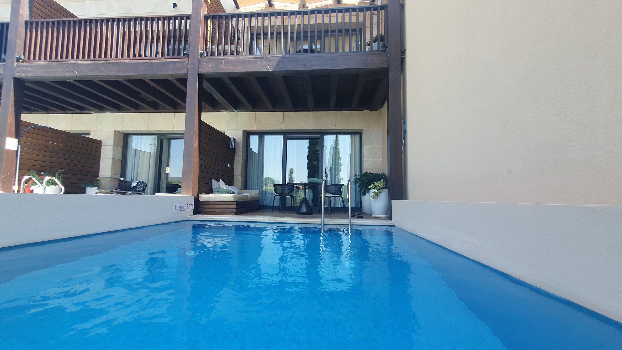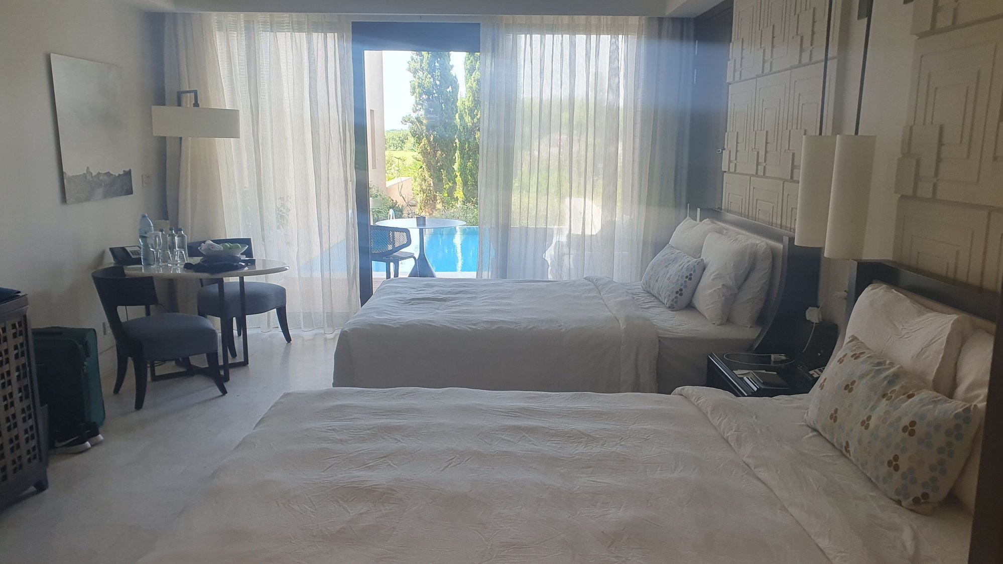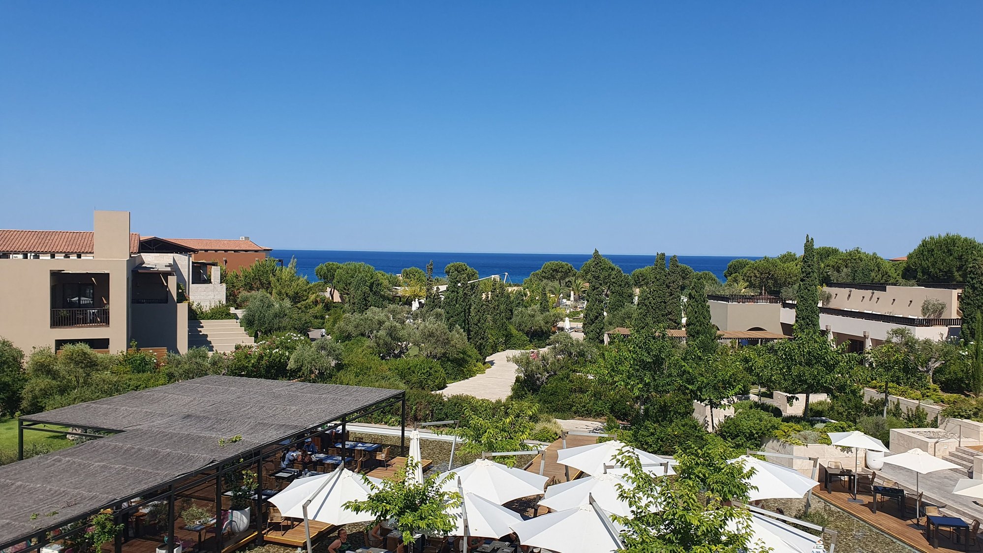 My room was spacious with a nice view and close to the beach. The beds were very comfortable and the infinity pool was a very good solution during the hot weather. The beach is also very nice, with plenty of sunbeds. The resort was full, but it was not felt at all in the common areas, on the beach, or in the restaurants. Perhaps only the pools saw more people.