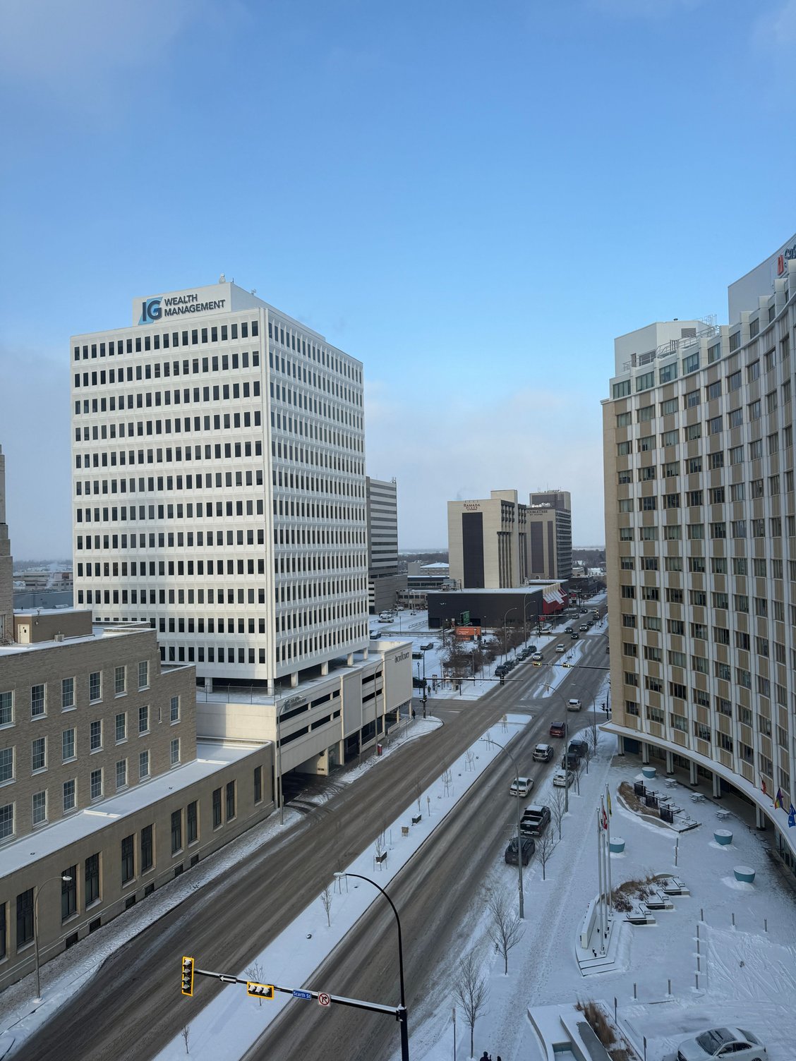 With regards to a wheelchair entrance this is via a stairlift on the East side, just around the corner from the main entrance. A little bit of a sore point TBH as I was on a City of Regina Access Advisory Committee when the previous owner had a large tax debt forgiven ( 10 Million plus was reported) , with one of the conditions being improving that access. This was to allow new owners to develop the hotel which was somewhat rundown at the time. Well they renovated, made it all pretty as a Radisson at the time, but never addressed the wheelchair access. There needs to be a sign informing wheelchair guests tha access is elsewhere before they get out of their vehicles. Not a problem in summer as it's not that far but on a cold Saskatchewan winter day it's a barrier. I guess at least there is a stair lift now.