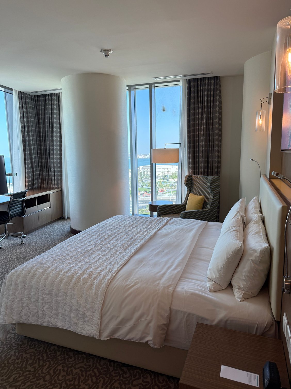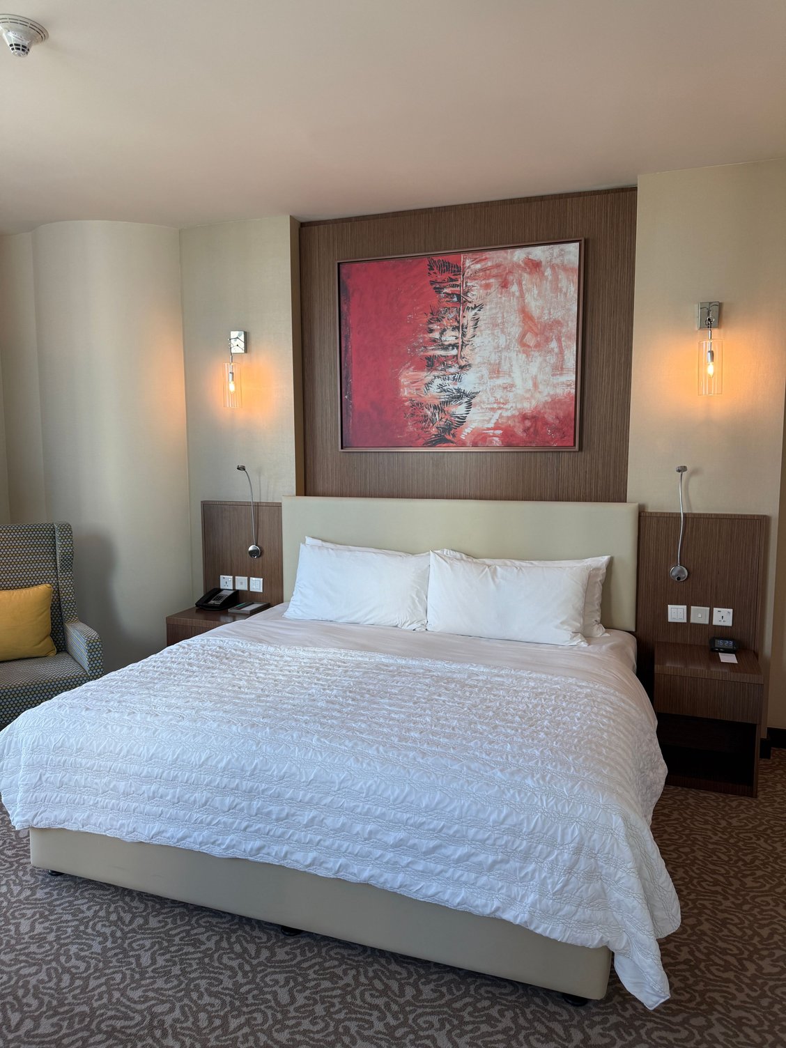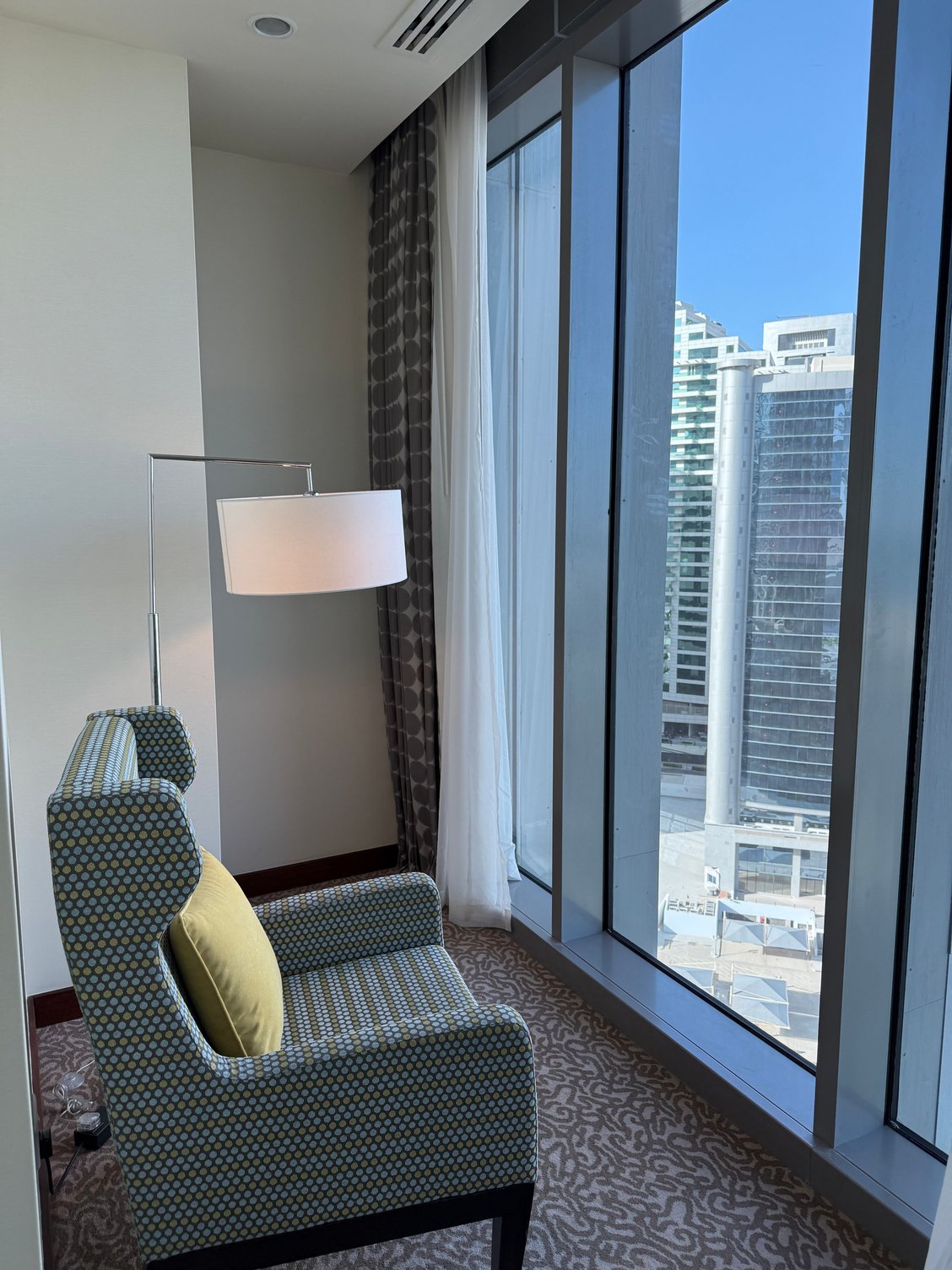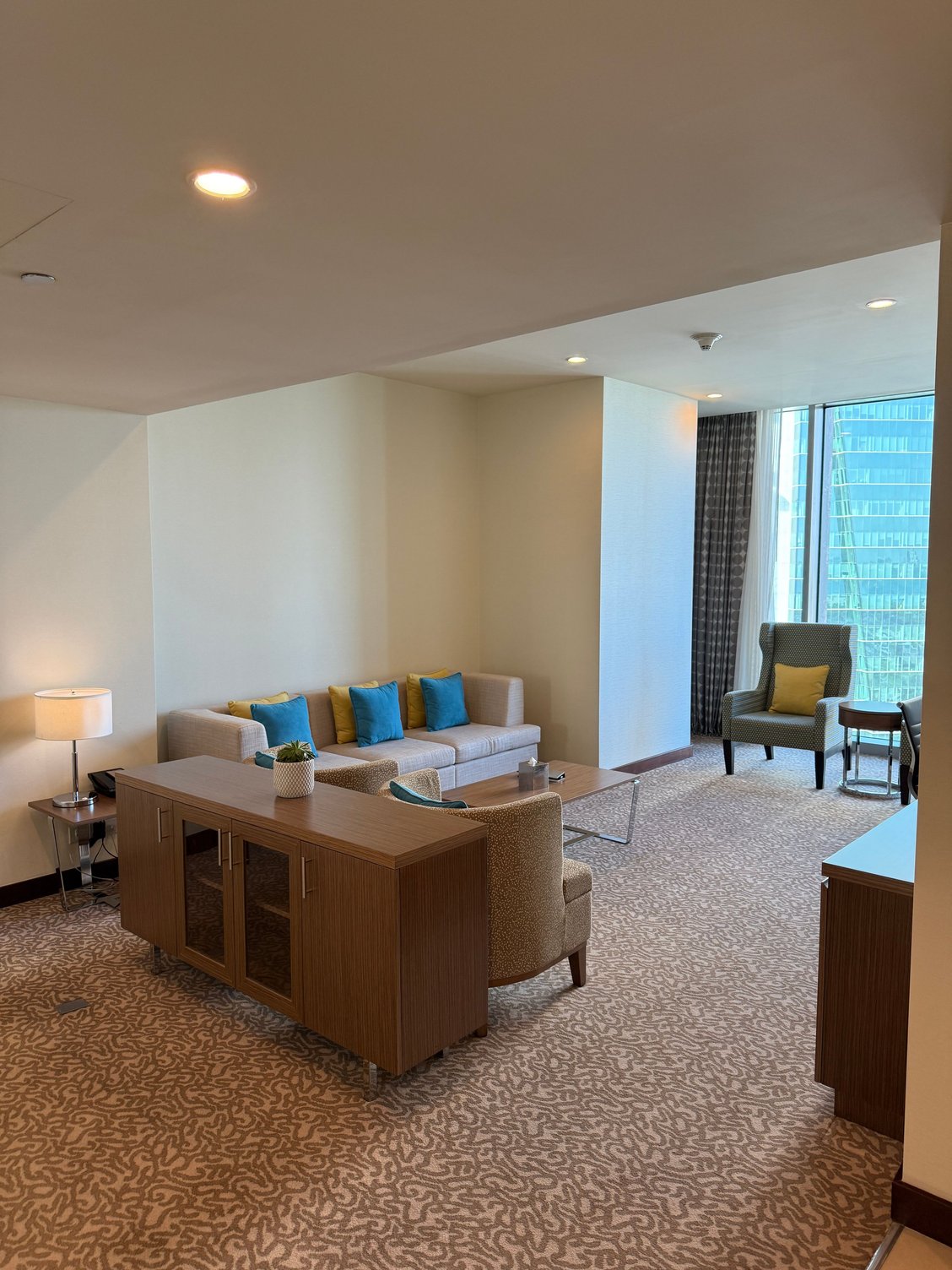 I have just completed a two night stay in the LeMeridien City Center Doha. The first night was paid and the second was a reward night certificate. Was upgraded to a one bedroom sea view suite on 19th floor before arrival with a fruit basket, two bottles of Italian water, and some sweets awaiting in the room. The suite was spacious. The only negative was that the sofa and chairs were not very comfortable to seat on. The lounge provided some hot and cold food with a happy hour from 5 to 7 pm that was sufficient for a light dinner. The staff was very welcoming and made sure that our glasses were full. The breakfast was in restaurant with a buffet and cook-to-order eggs. Our preceding night was in Grand Hyatt Doha and by a comparison the breakfast in LeMeridien had lesser varieties and the Hollandaise sauce for the Eggs Benedict was not quite right. We have asked for a 4 pm late checkout but were allowed to stay only till 1 pm because of the Formula One in Doha and Geneva auto show nearby. Overall, the stay was fine but nothing really special.
