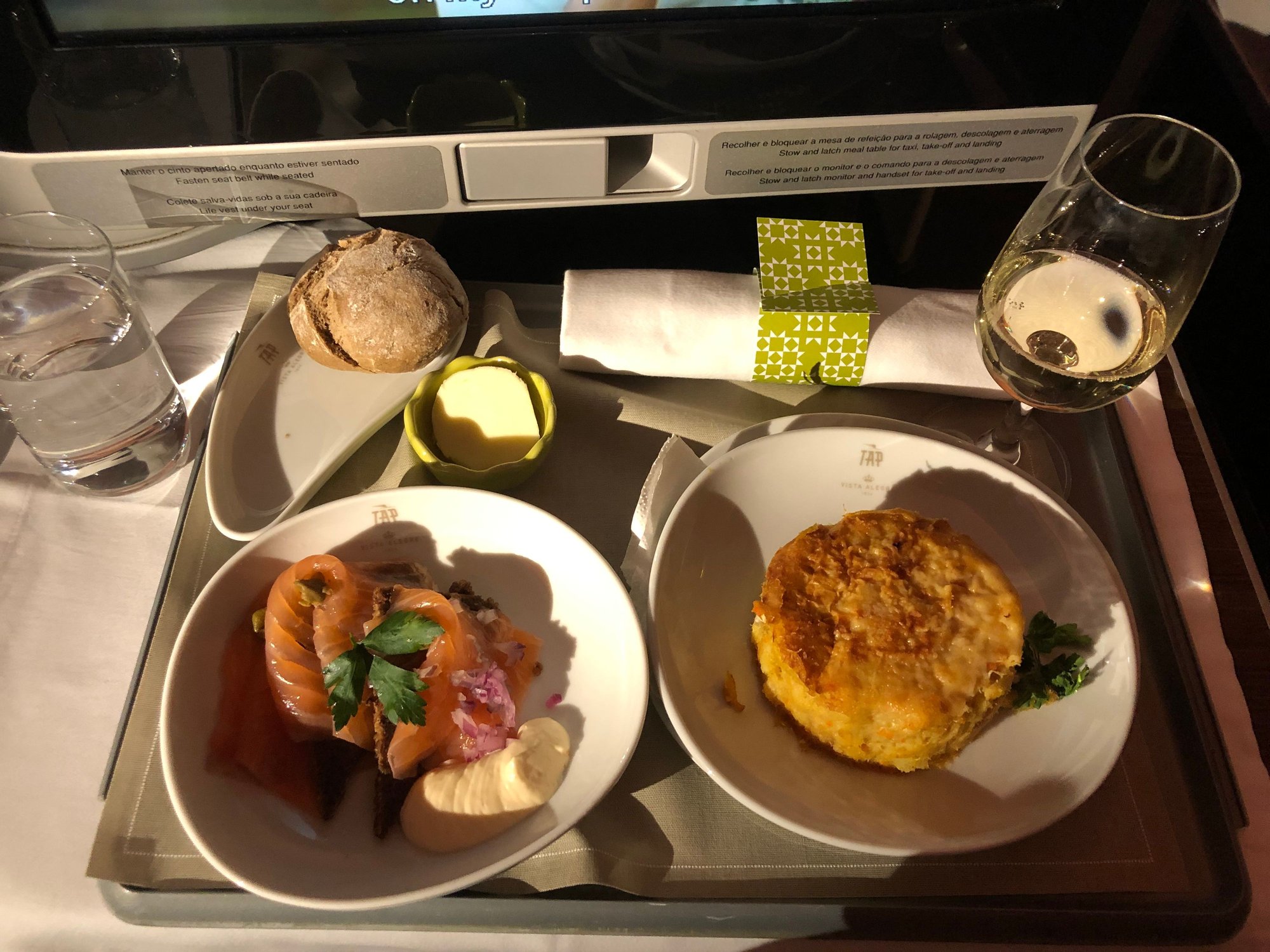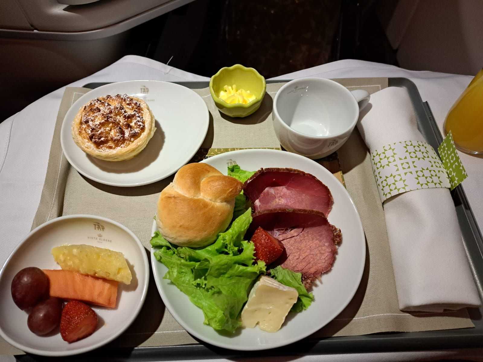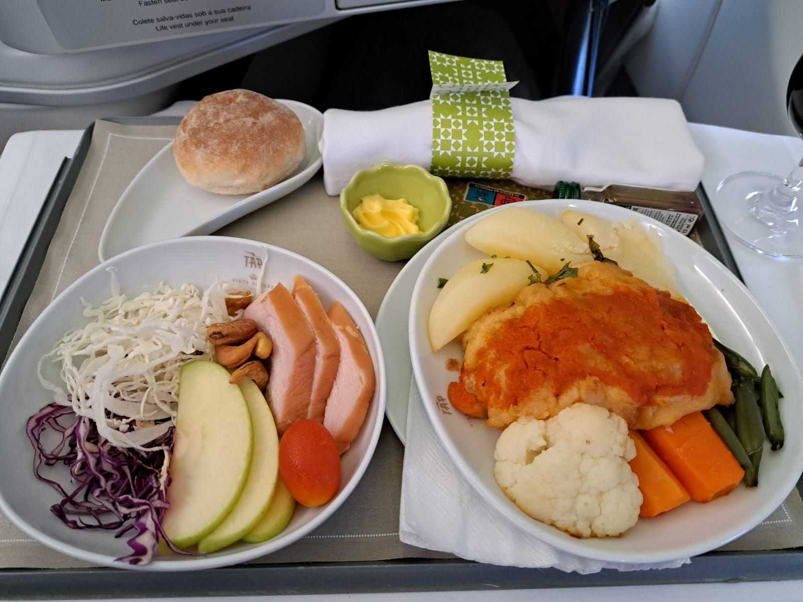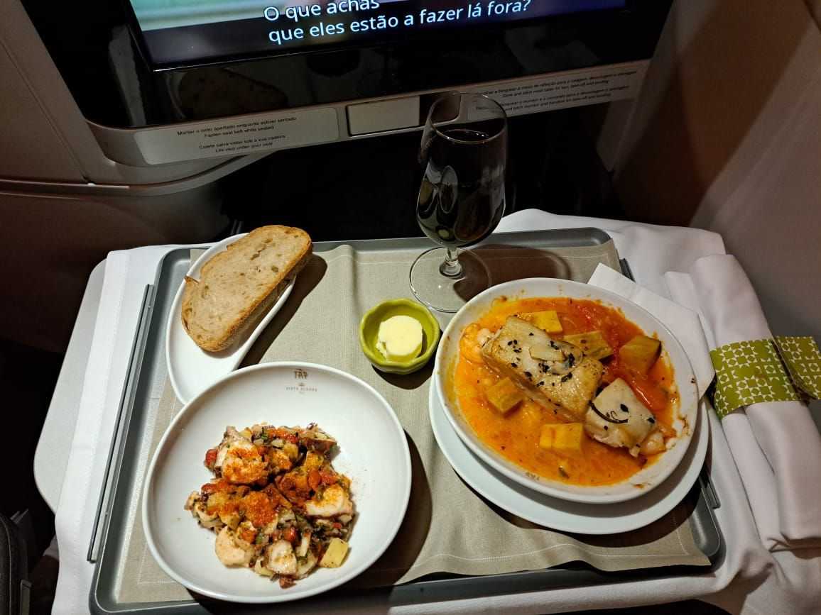 I'm struggling to figure out what that last plate is, 3 photos up - the main dish between the veggies. I probably won't be able to get a business upgrade/bid up seat, but I'm looking anyway. So thanks for the photos. Guess I'll need to use a translation app on board. Is Wifi really free on TAP - in Economy as well as Business?