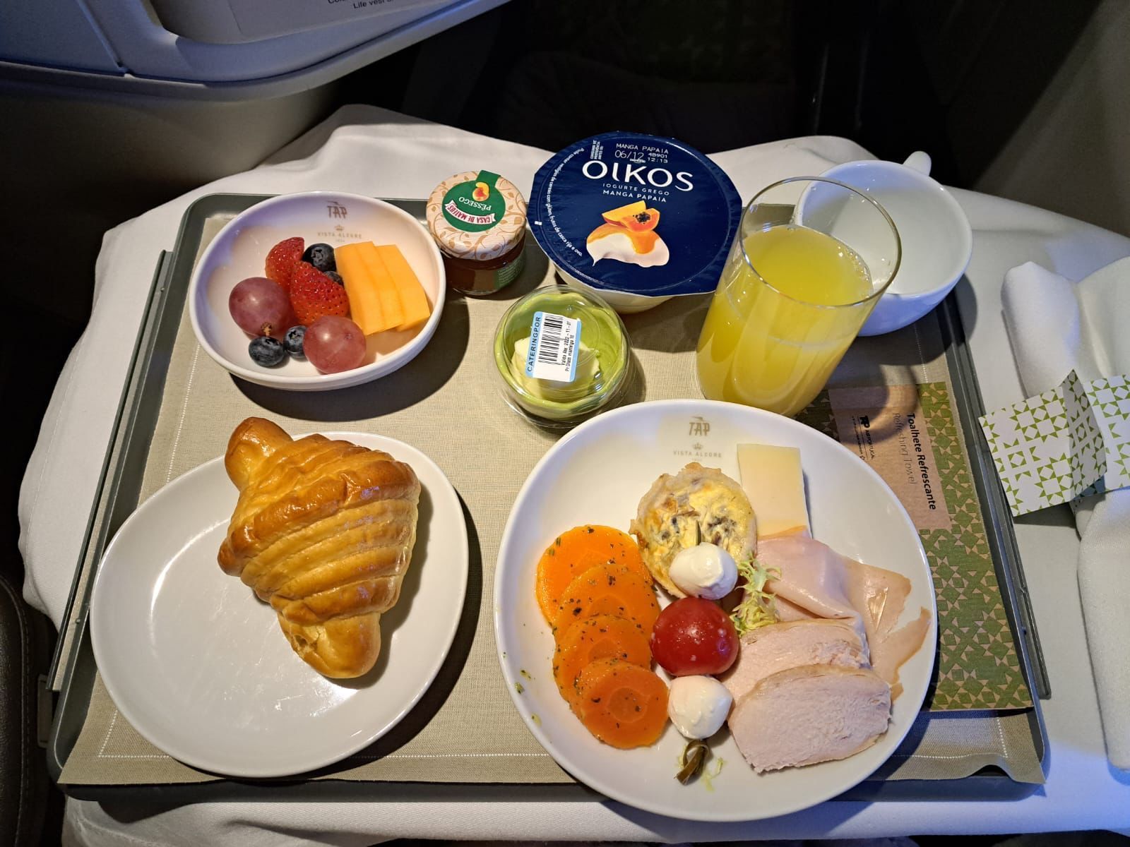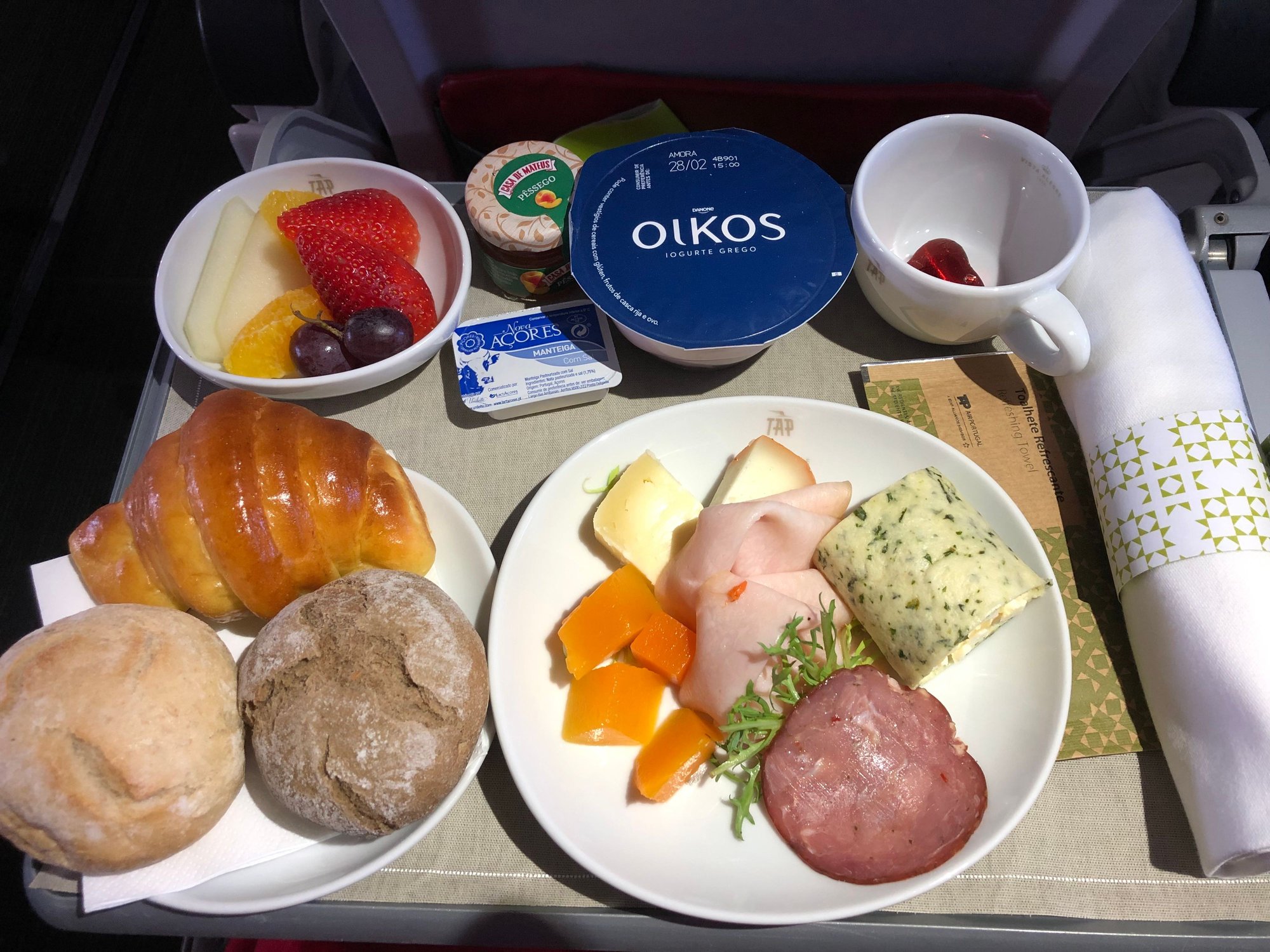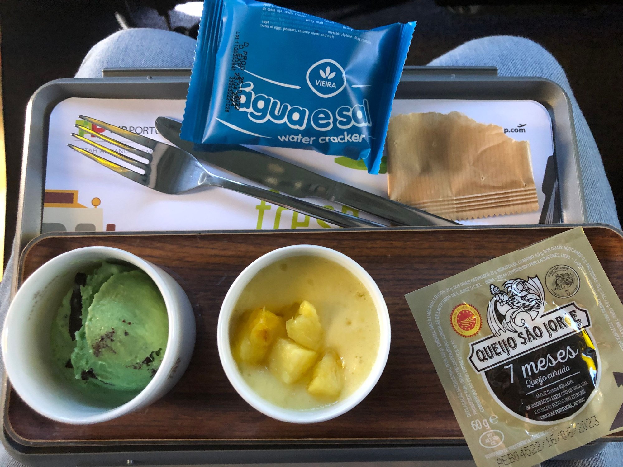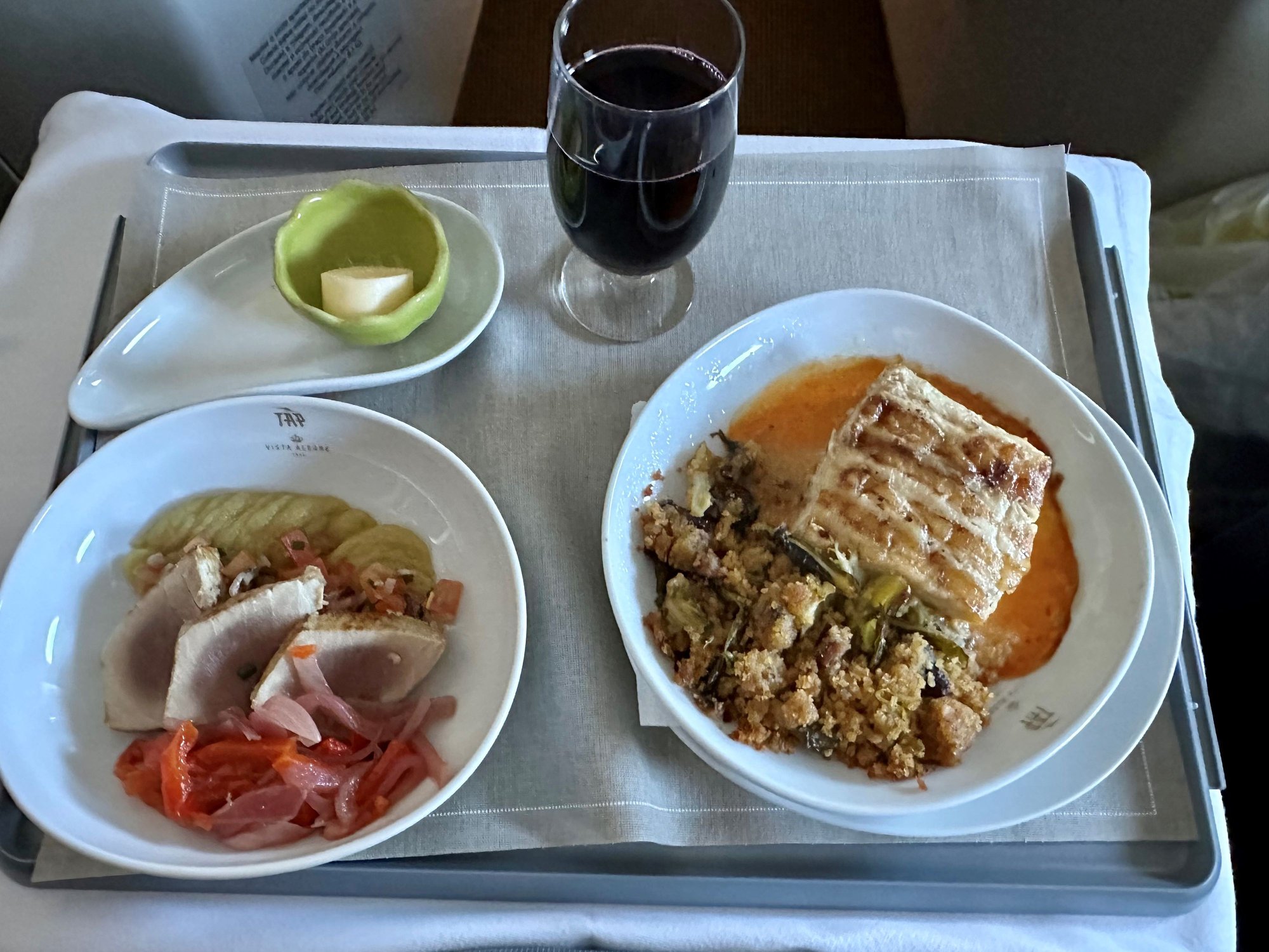 I'm struggling to figure out what that last plate is, 3 photos up - the main dish between the veggies. I probably won't be able to get a business upgrade/bid up seat, but I'm looking anyway. So thanks for the photos. Guess I'll need to use a translation app on board. Is Wifi really free on TAP - in Economy as well as Business?