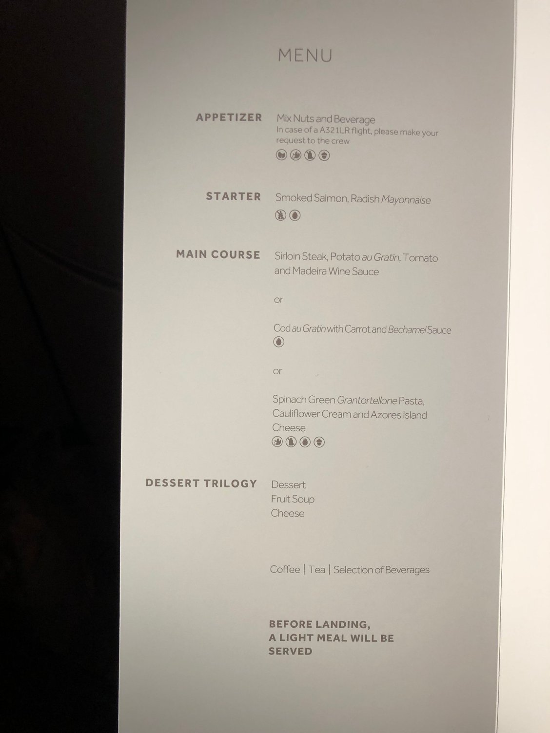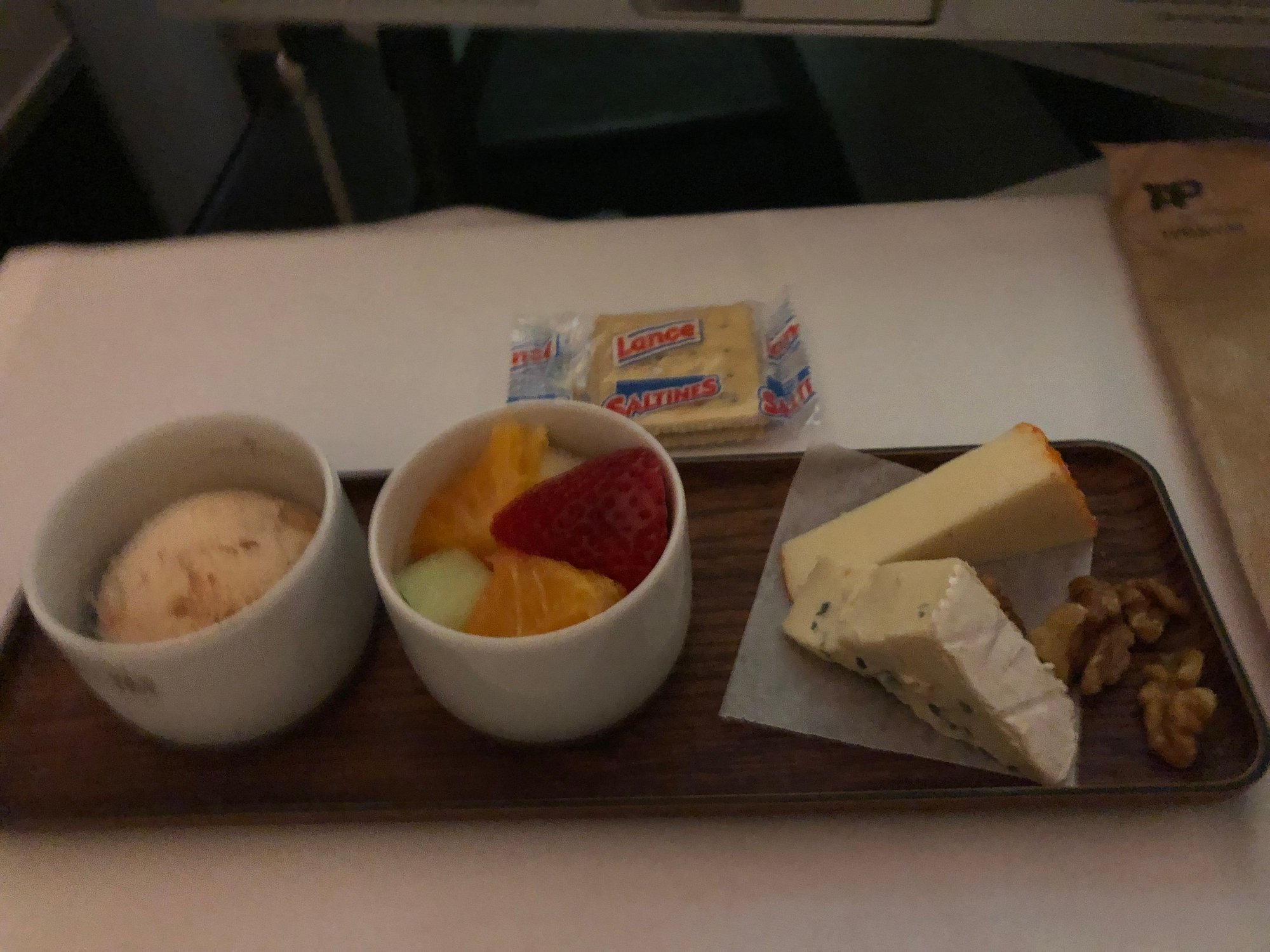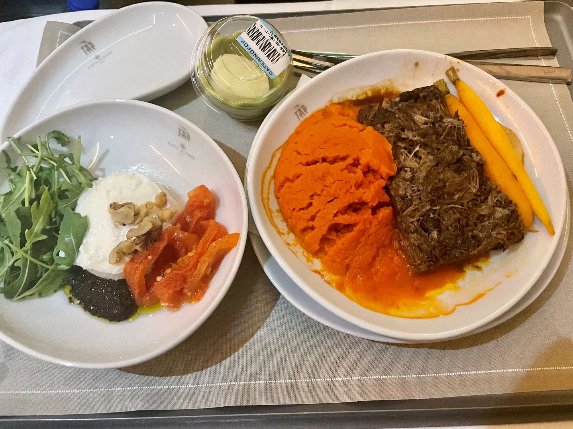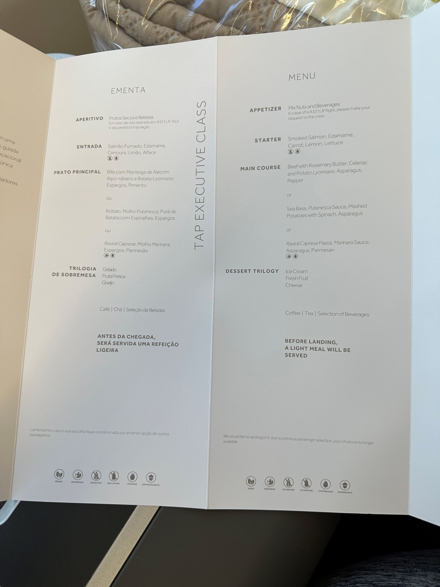 I'm struggling to figure out what that last plate is, 3 photos up - the main dish between the veggies. I probably won't be able to get a business upgrade/bid up seat, but I'm looking anyway. So thanks for the photos. Guess I'll need to use a translation app on board. Is Wifi really free on TAP - in Economy as well as Business?