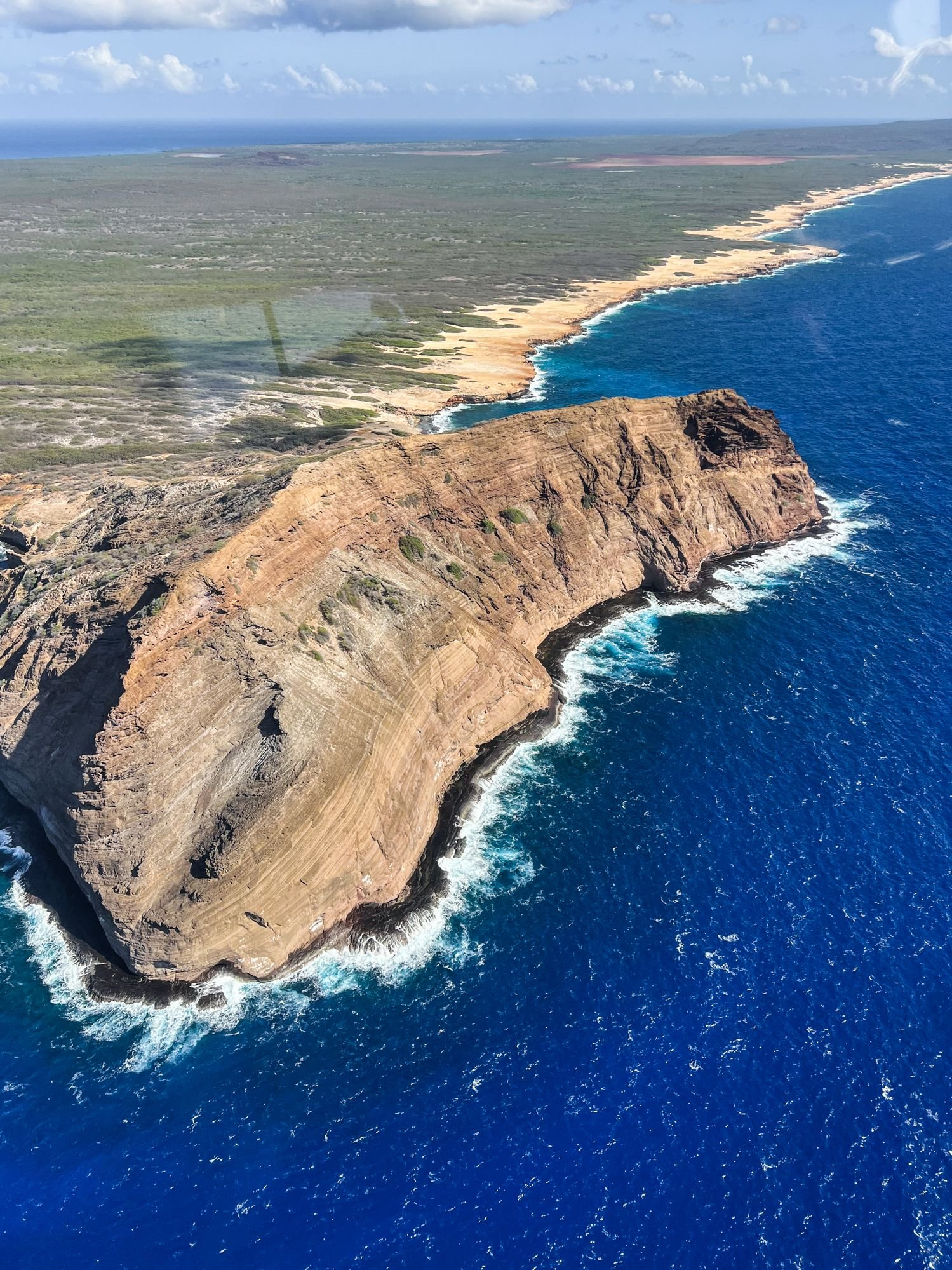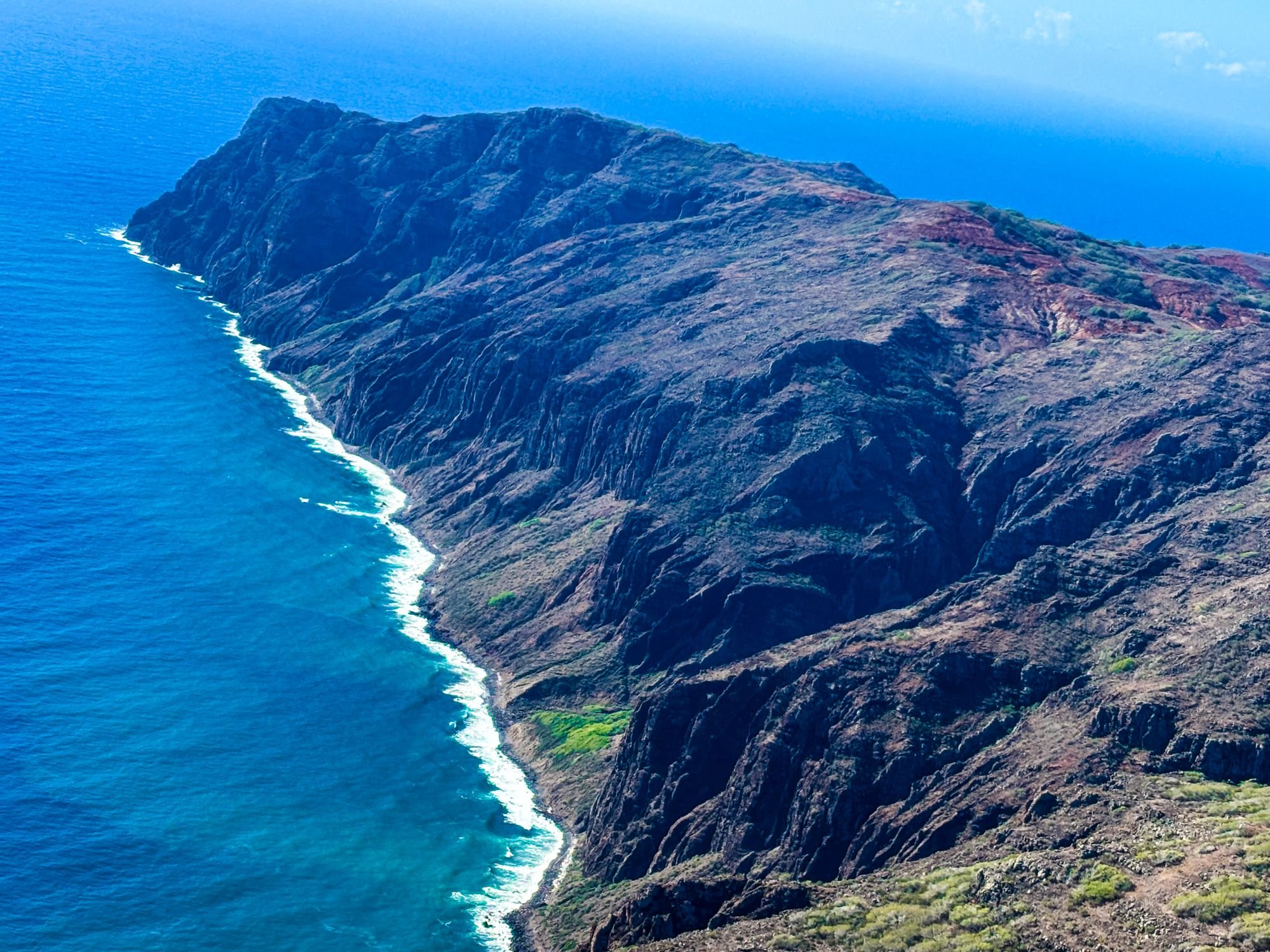 Helicopter view of Ni'ihau's eastern shoreline, looking north.