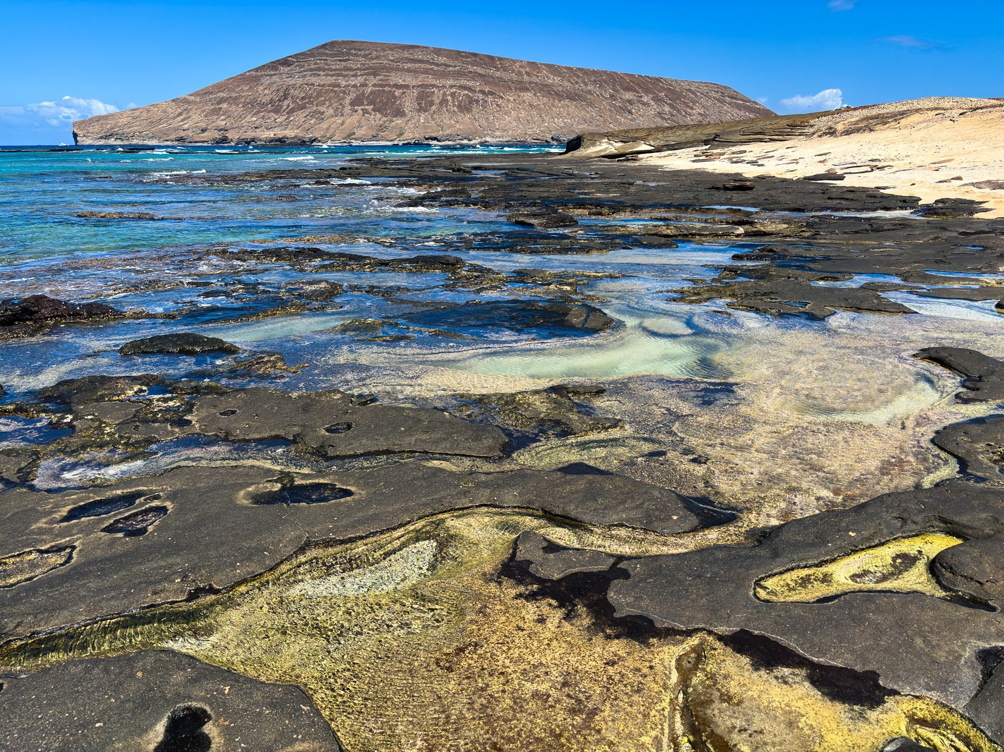 Ka'aku'u Beach, Ni'ihau, looking northward with Lehua in the background