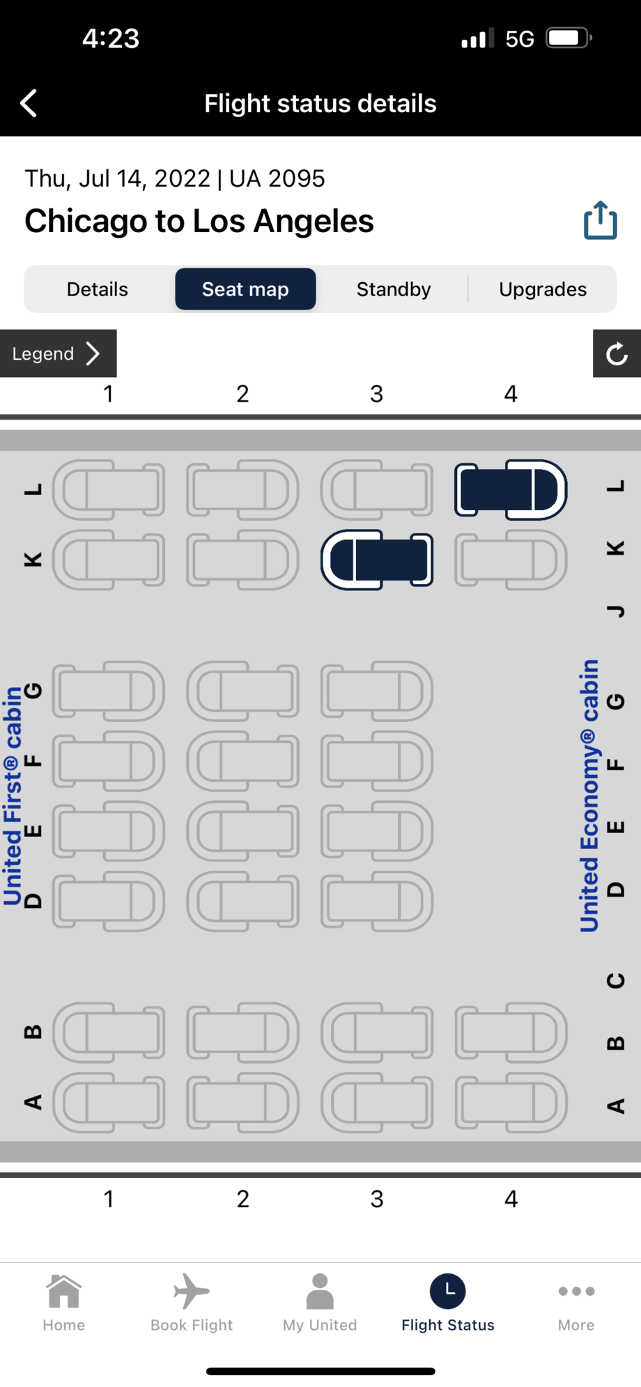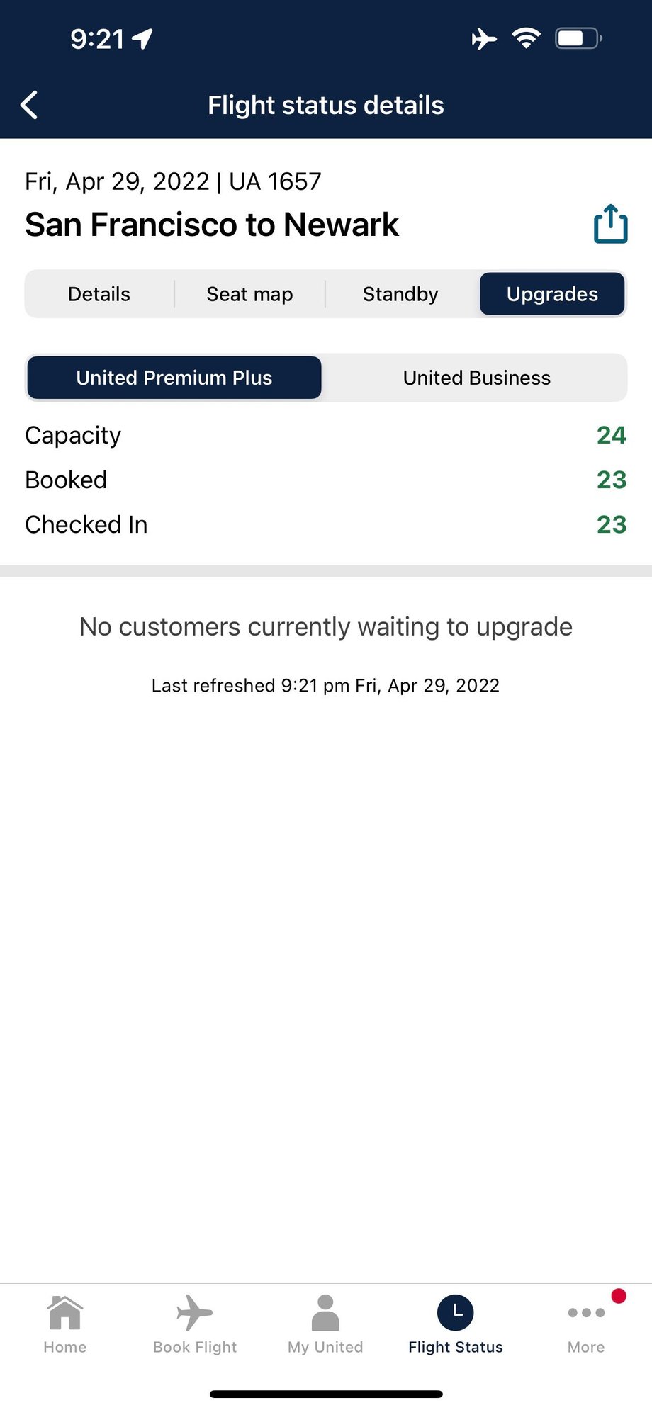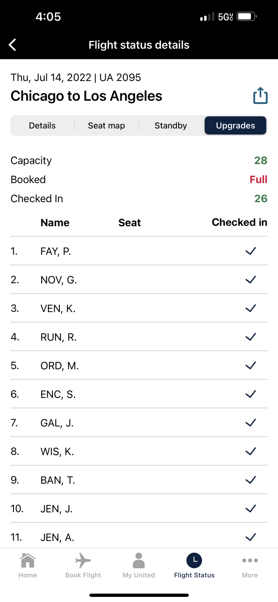 Because from where Im seated I could see anyone moving up and no one was moved. If they were upgraded, they should appear as cleared on the list and the seats occupied but were 90 minutes from landing and the seats are still vacant on the map. If my two roommates finally go to pee Ill take a look upfront.