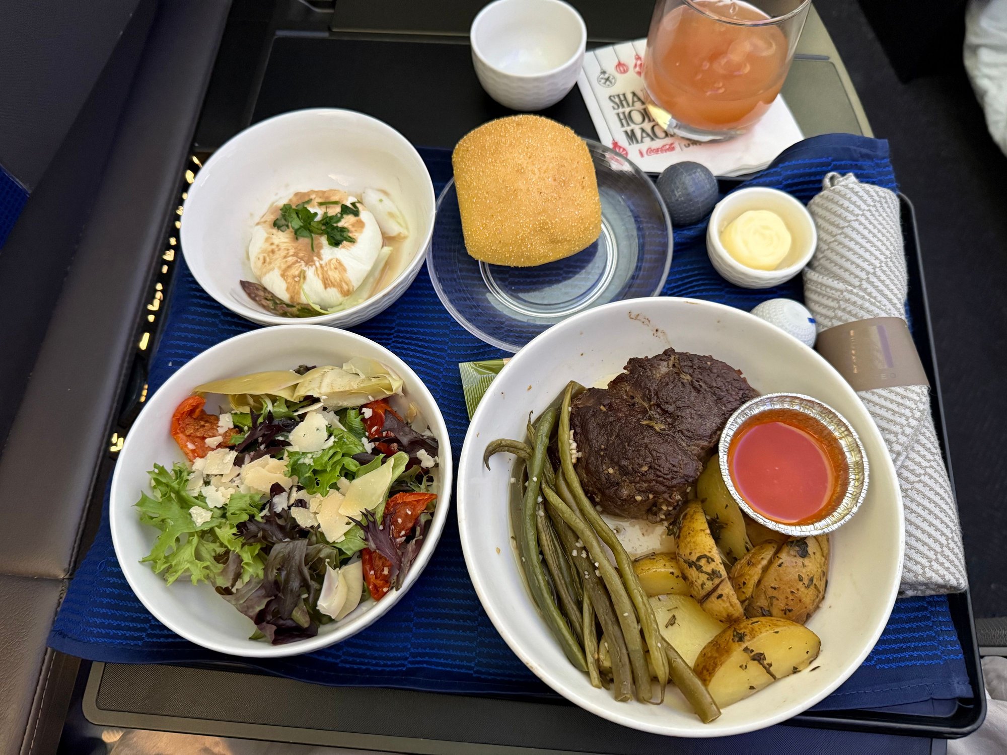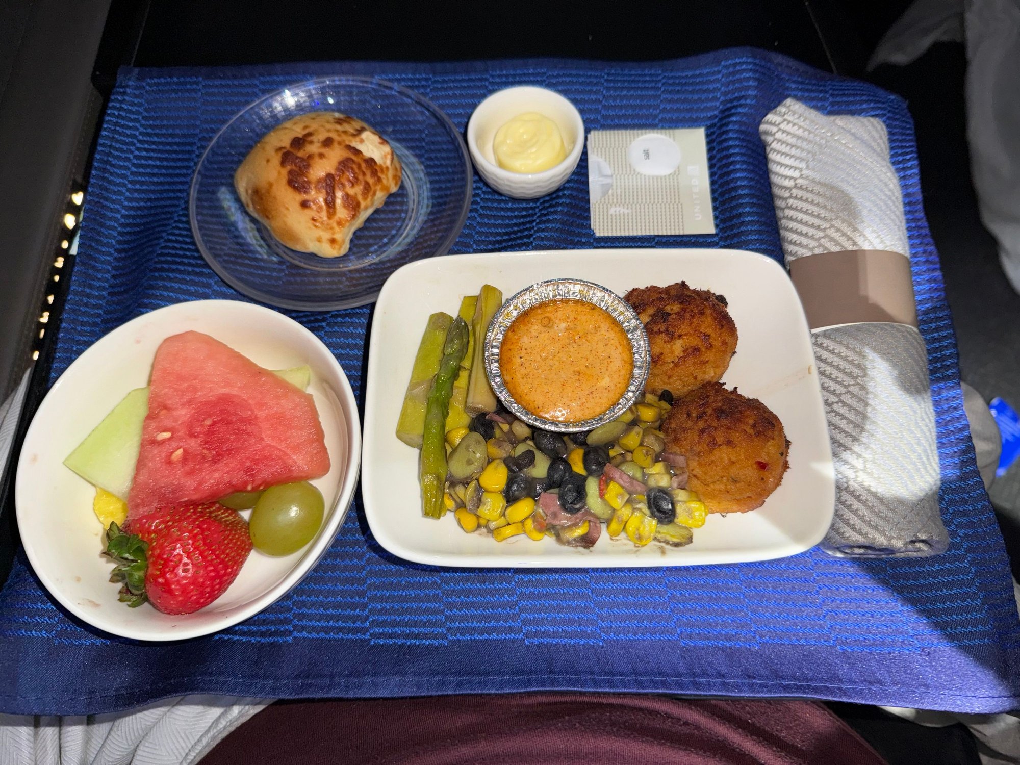 Overall: impressed. The meal and fixings had an edge over my AA F meal last year on JFK-LAX, but AA had better warmed nuts and sundaes. Overall, a wash, but I was really impressed with the UC and service was definitely better and warmer on this flight, so probably giving this flight a small edge over my AA experience last year.