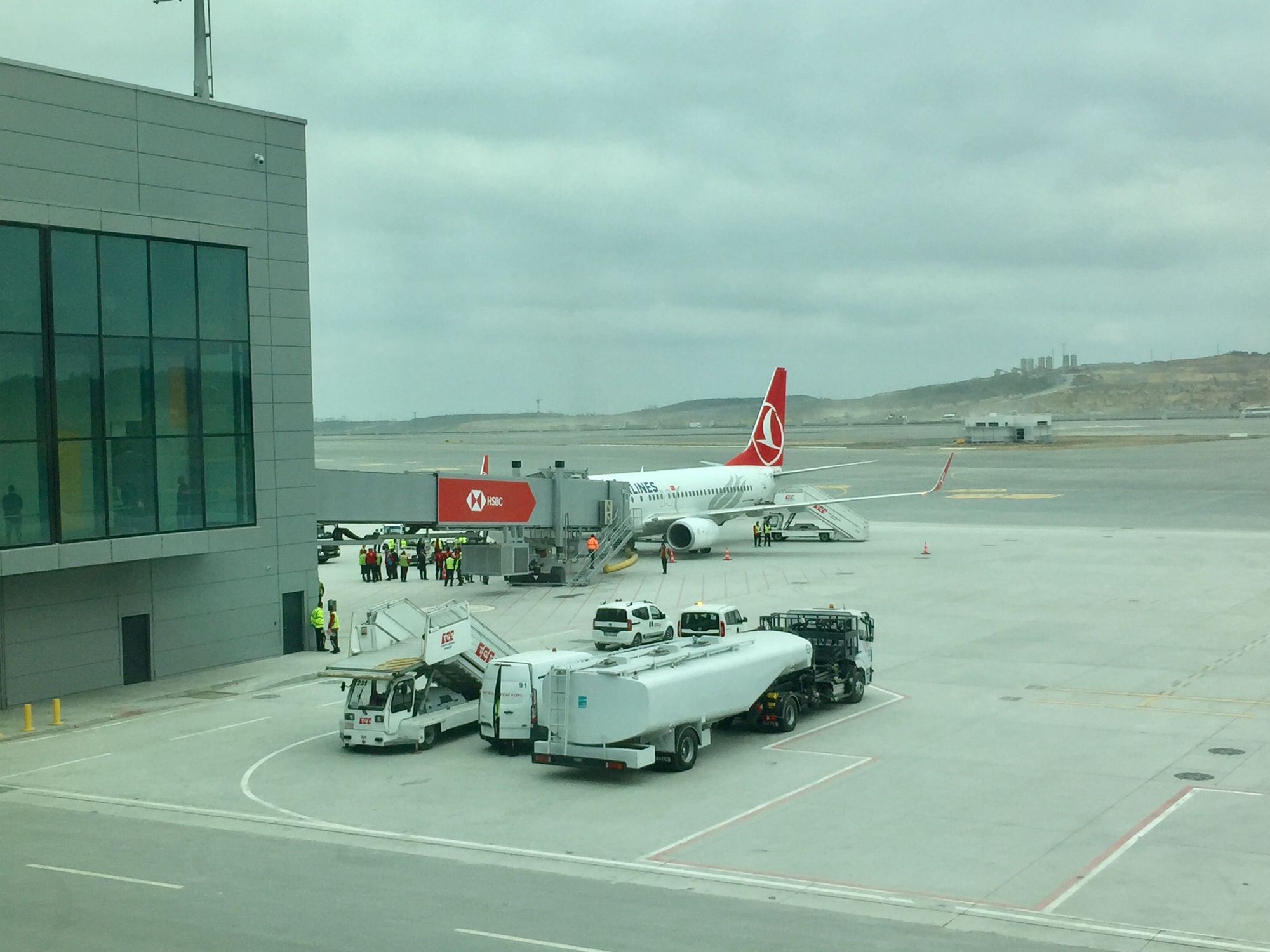 An actual B737 on which we will fly! Note all the construction vehicles in background