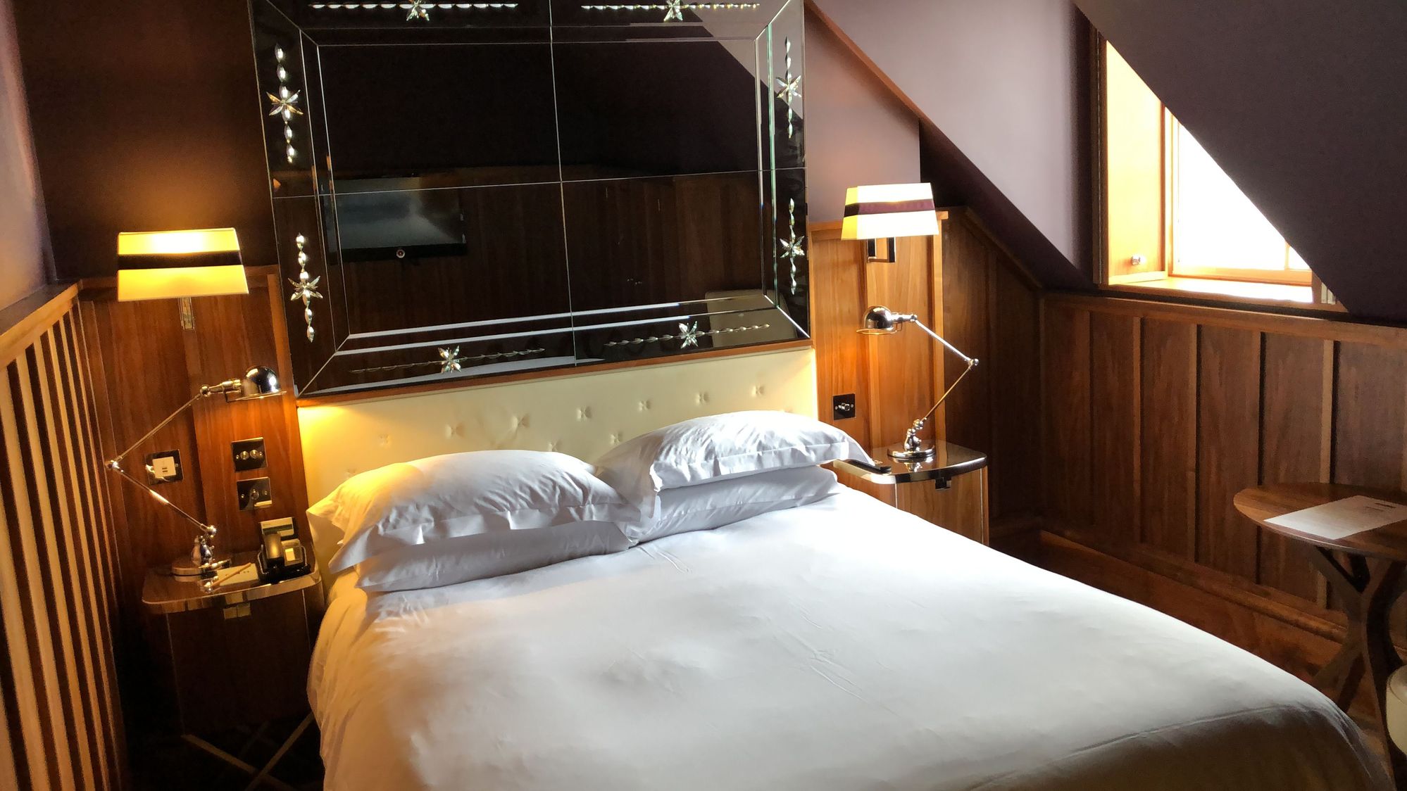 Wainscot room with one small window.
