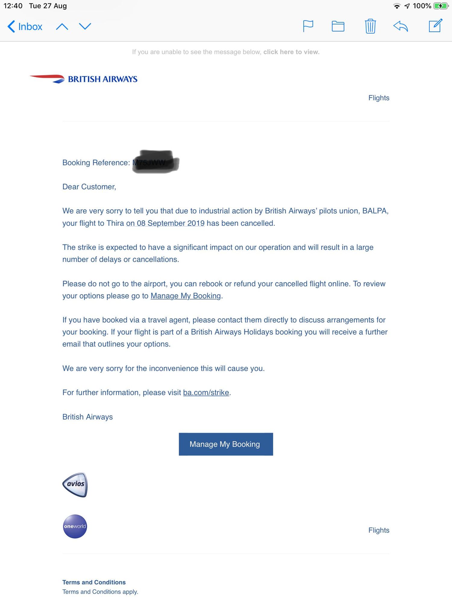 This is the actual email, it states the flight has been cancelled, do not go to the airport etc. etc.