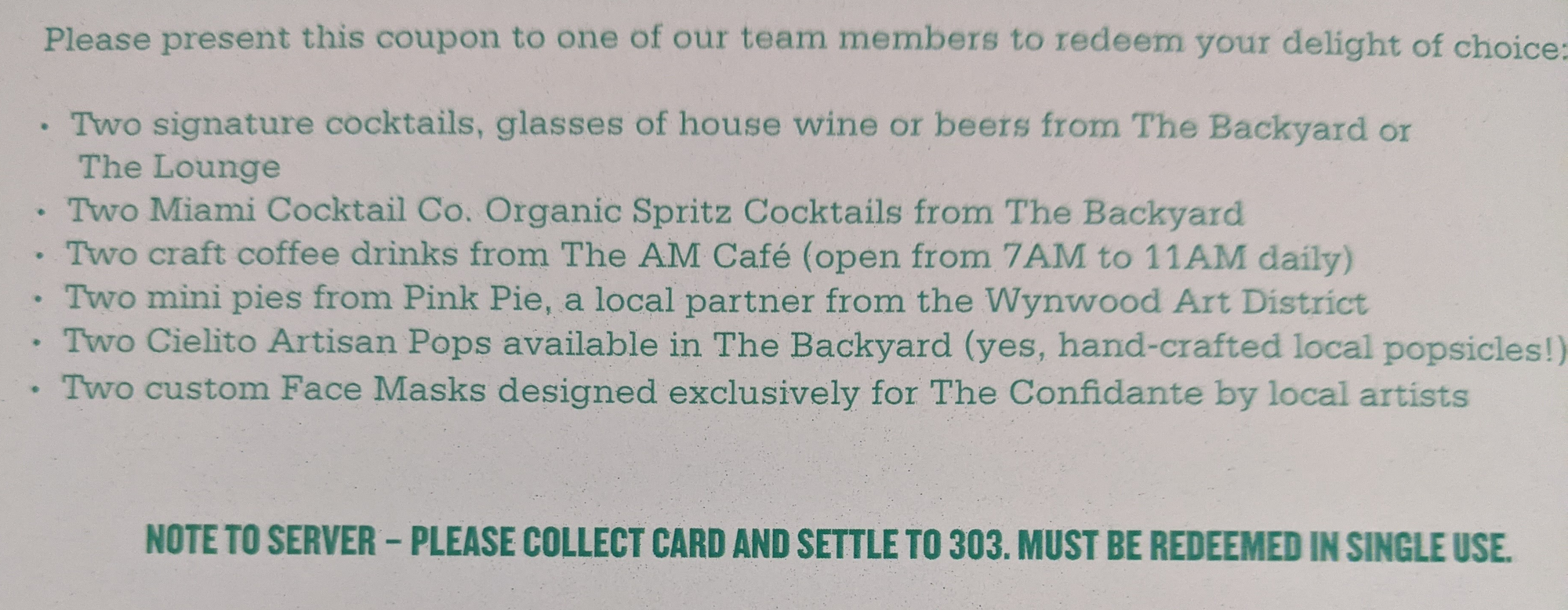 Was given this coupon inside Global welcome envelope at check-in.