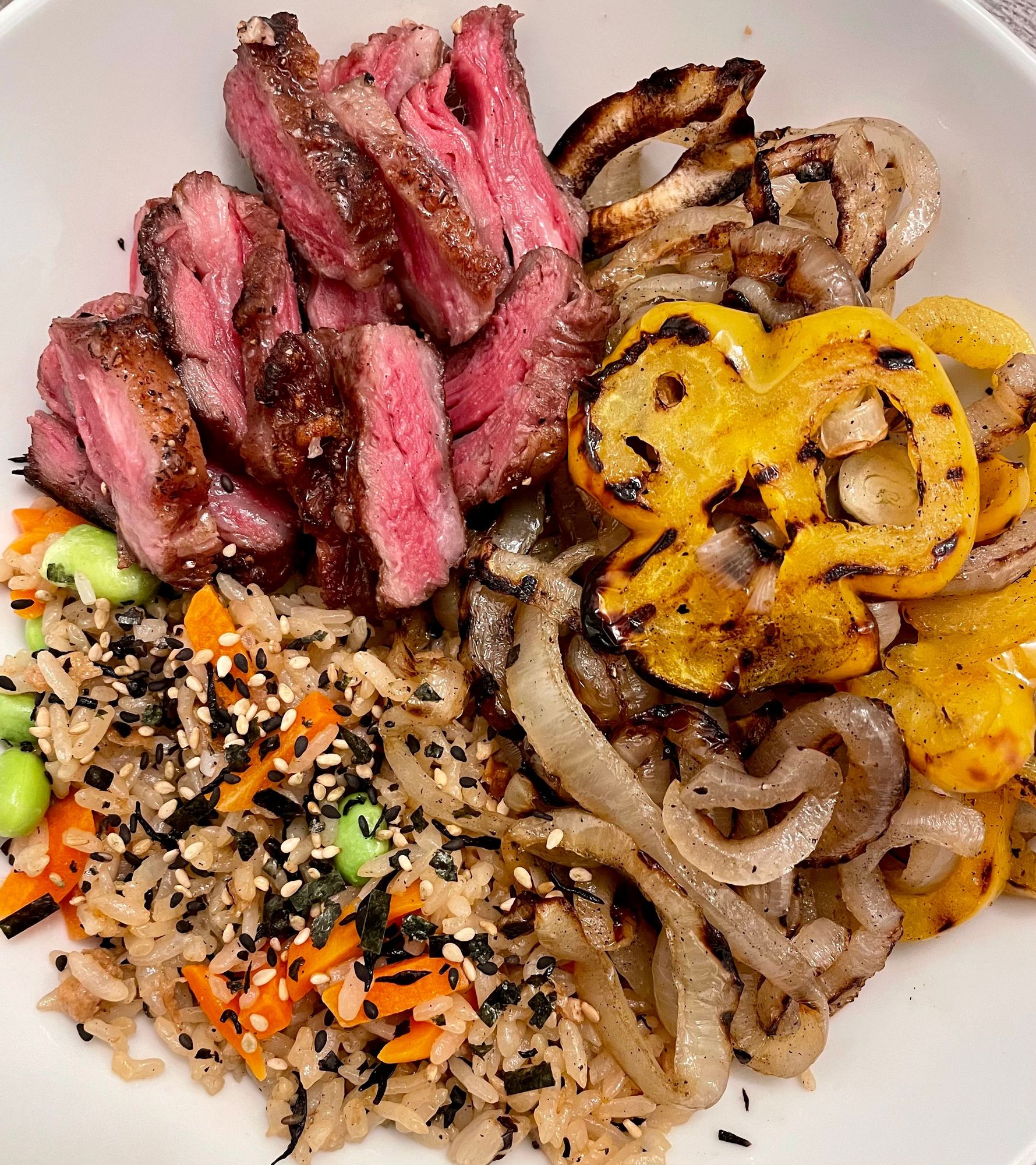 Plated with some fried rice because rice is obligatory (and delicious) in this household.
