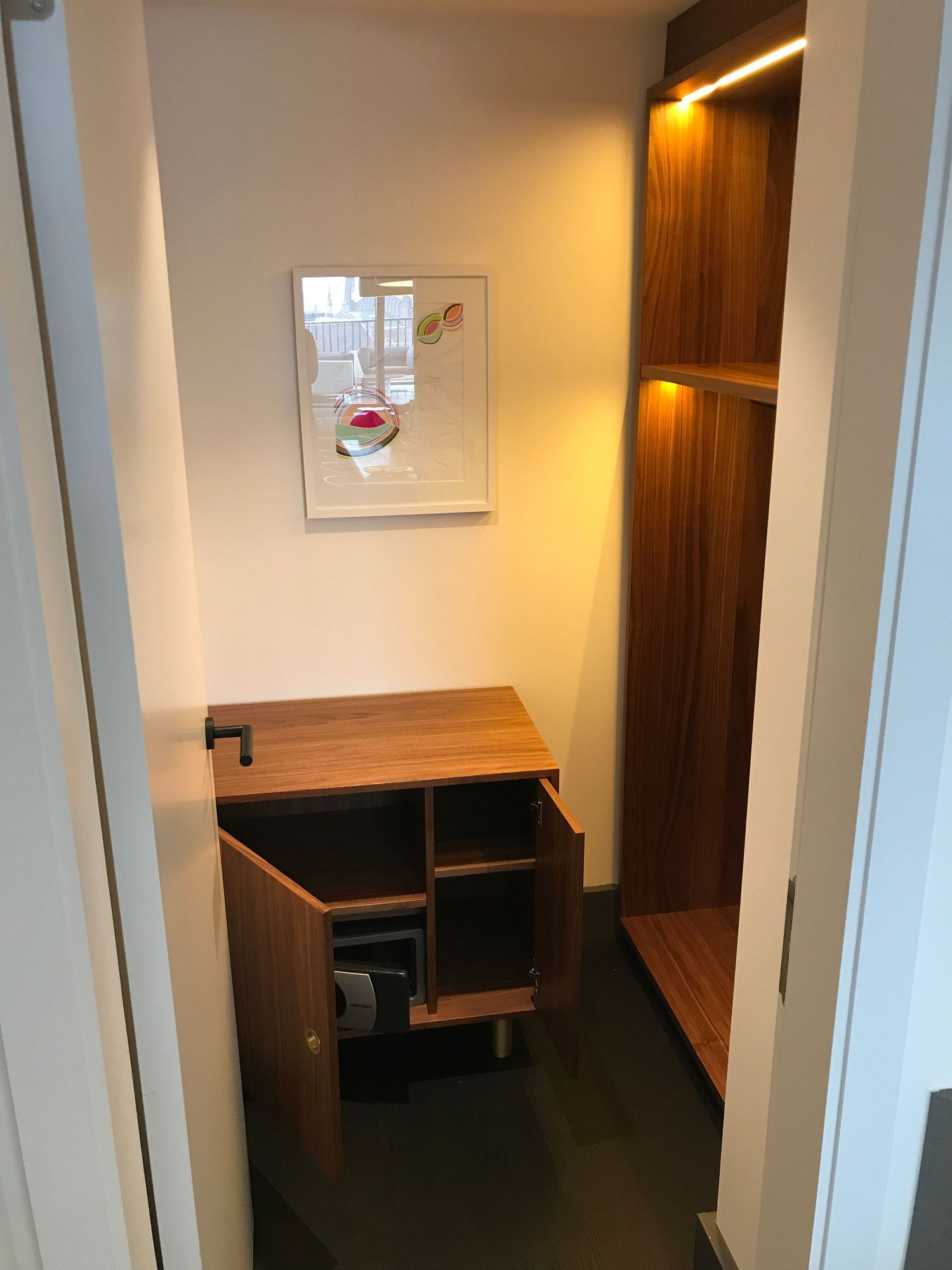 Extra coatroom next to wetbar, has a standard safe