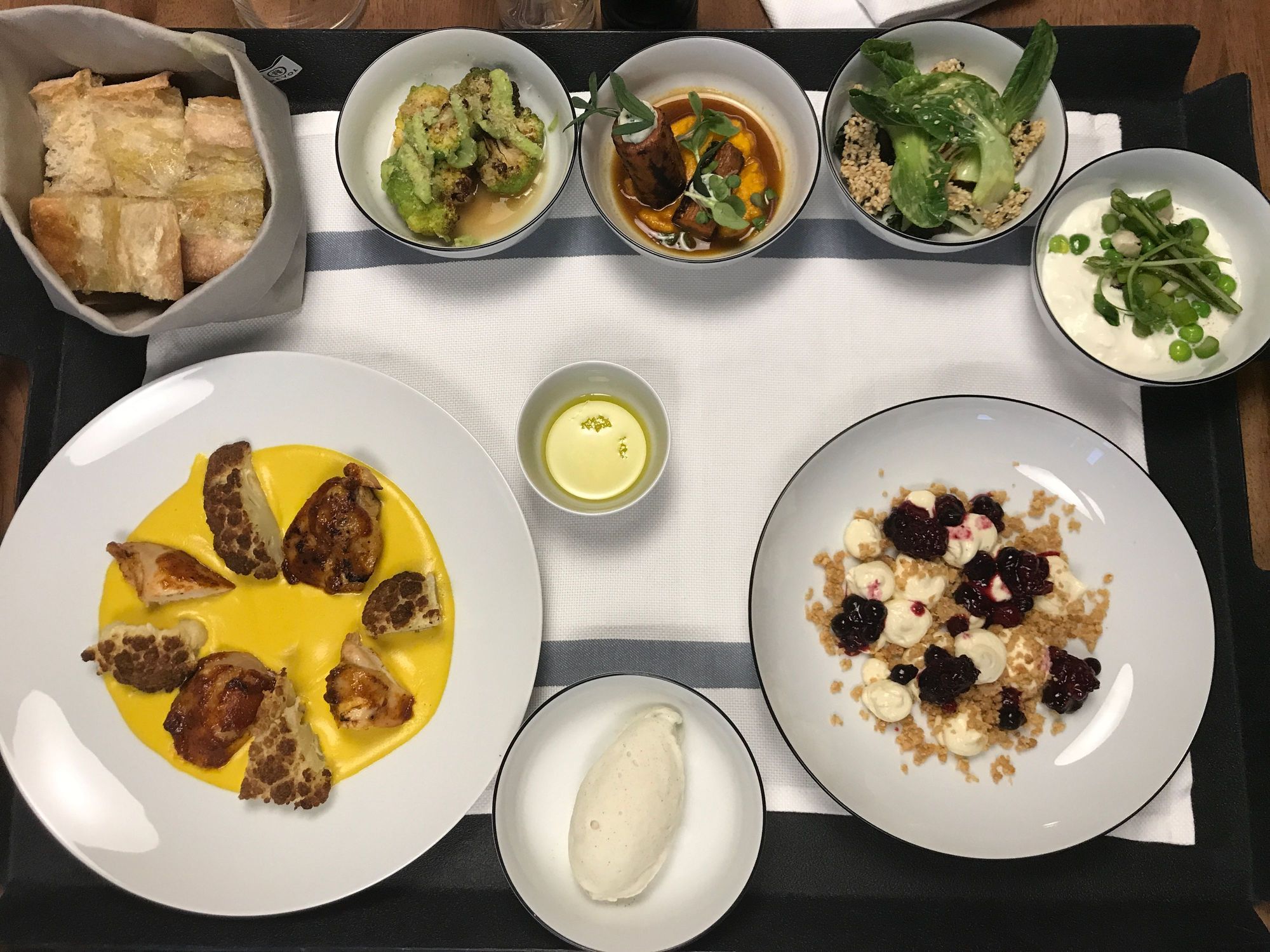 Our dinner - note the 4 smaller plates on the upper right hand side are the chef's taste for Inner Circke