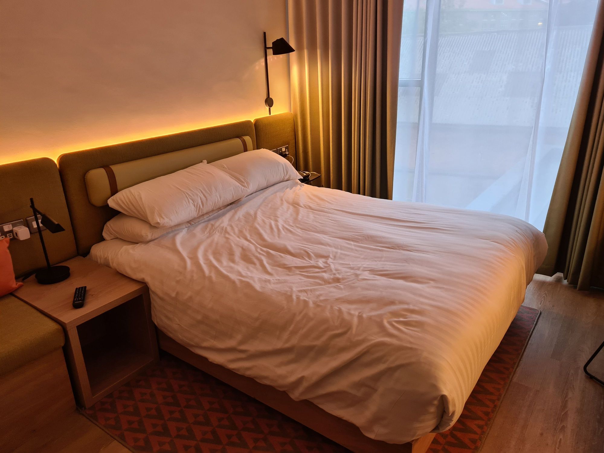 The bed was made properly when we arrived, this was after we sat on it.
