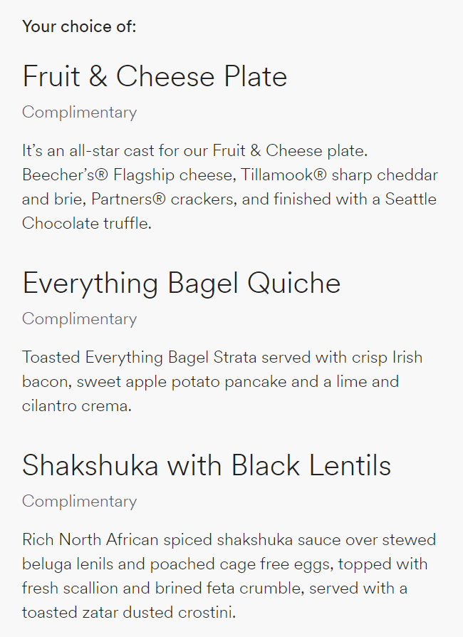 Meal options on upcoming