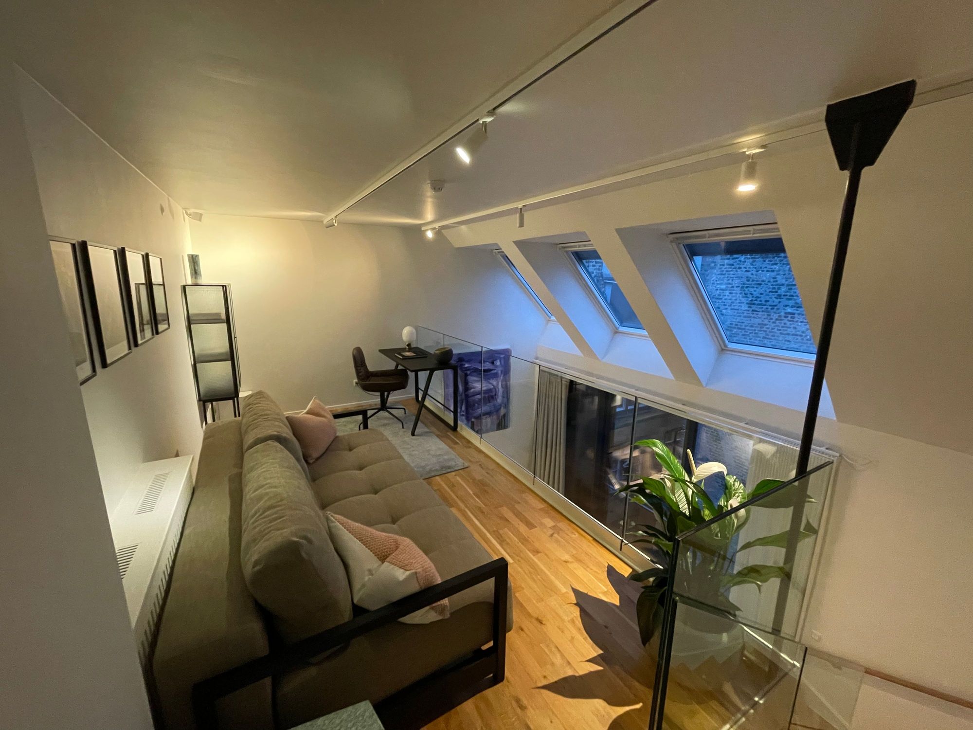 Cosy Loft with a sofa and desk and a killer view of the Copenhagen Tower.