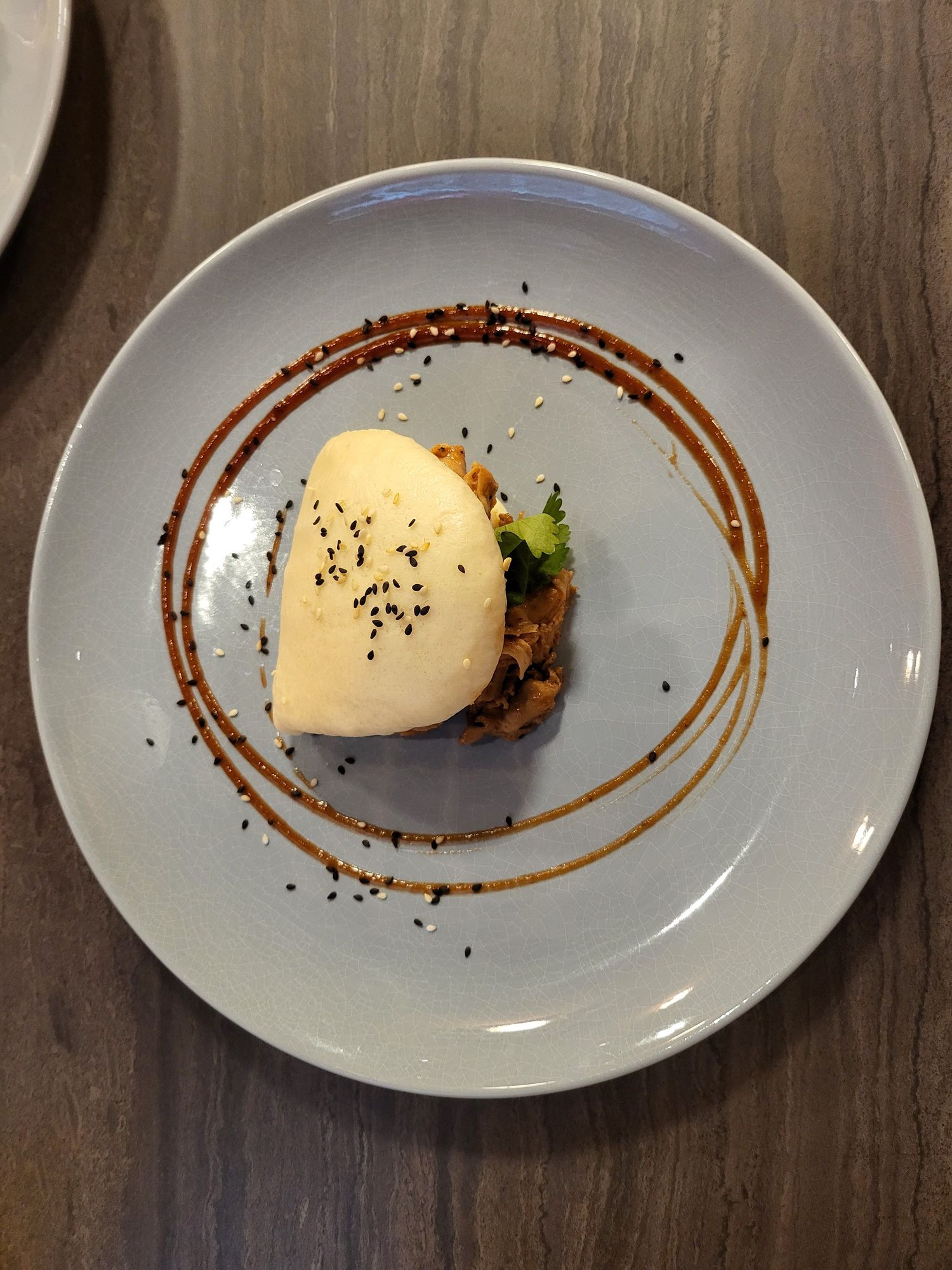 Bao bun BBQ chicken. This was way too dry, nearly NO sauce inside. If they add more sauce it will be great.