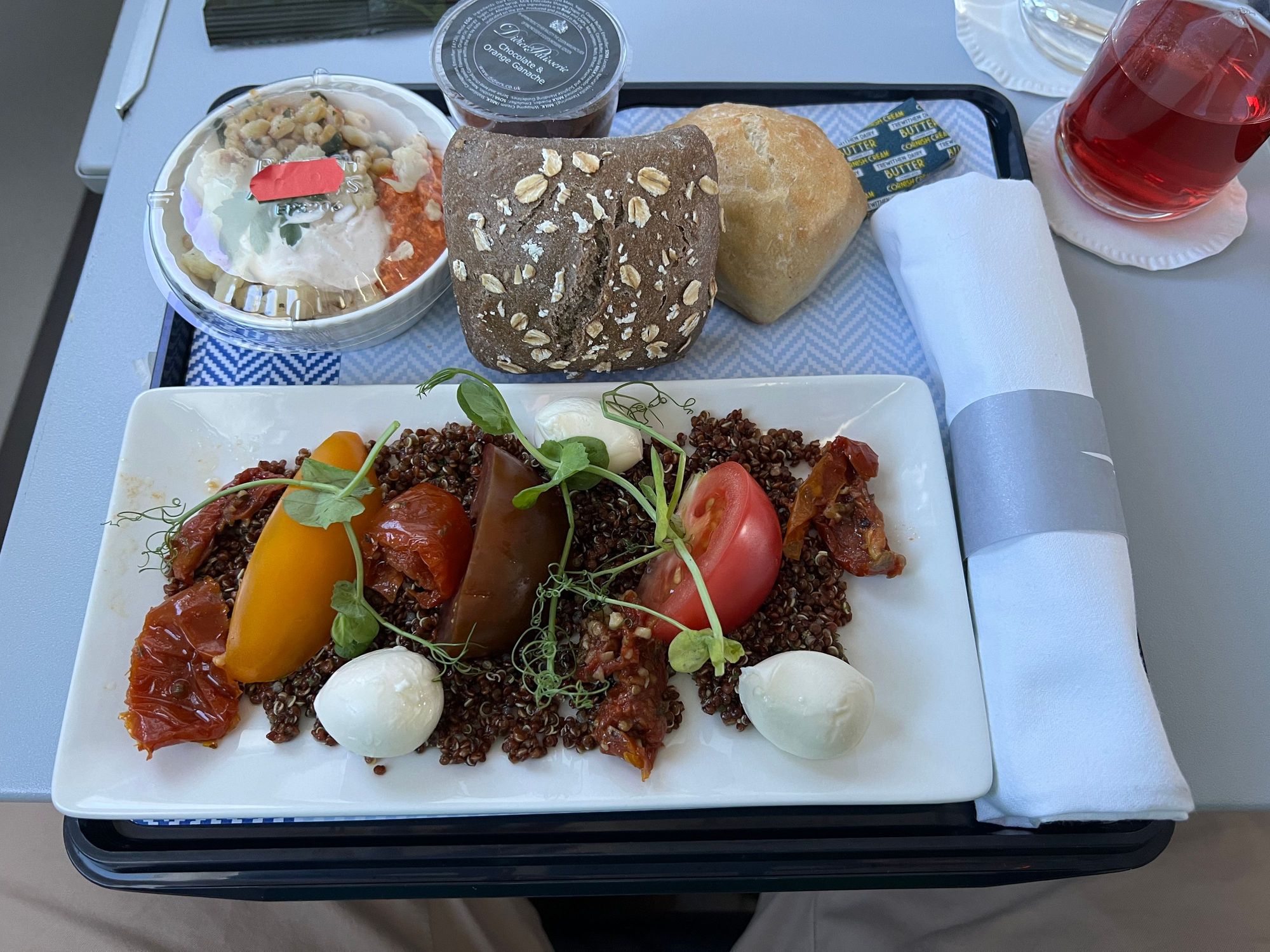 LGW-PMI, 26 August 2022, 18:10 departure Band 2 Tomato, Mozzarella Quinoa Salad Same as what was on offer back in June from LGW No menus loaded, alternative was a Ploughman’s Tasted ok, albeit as bland as I remember it from the last time I got it