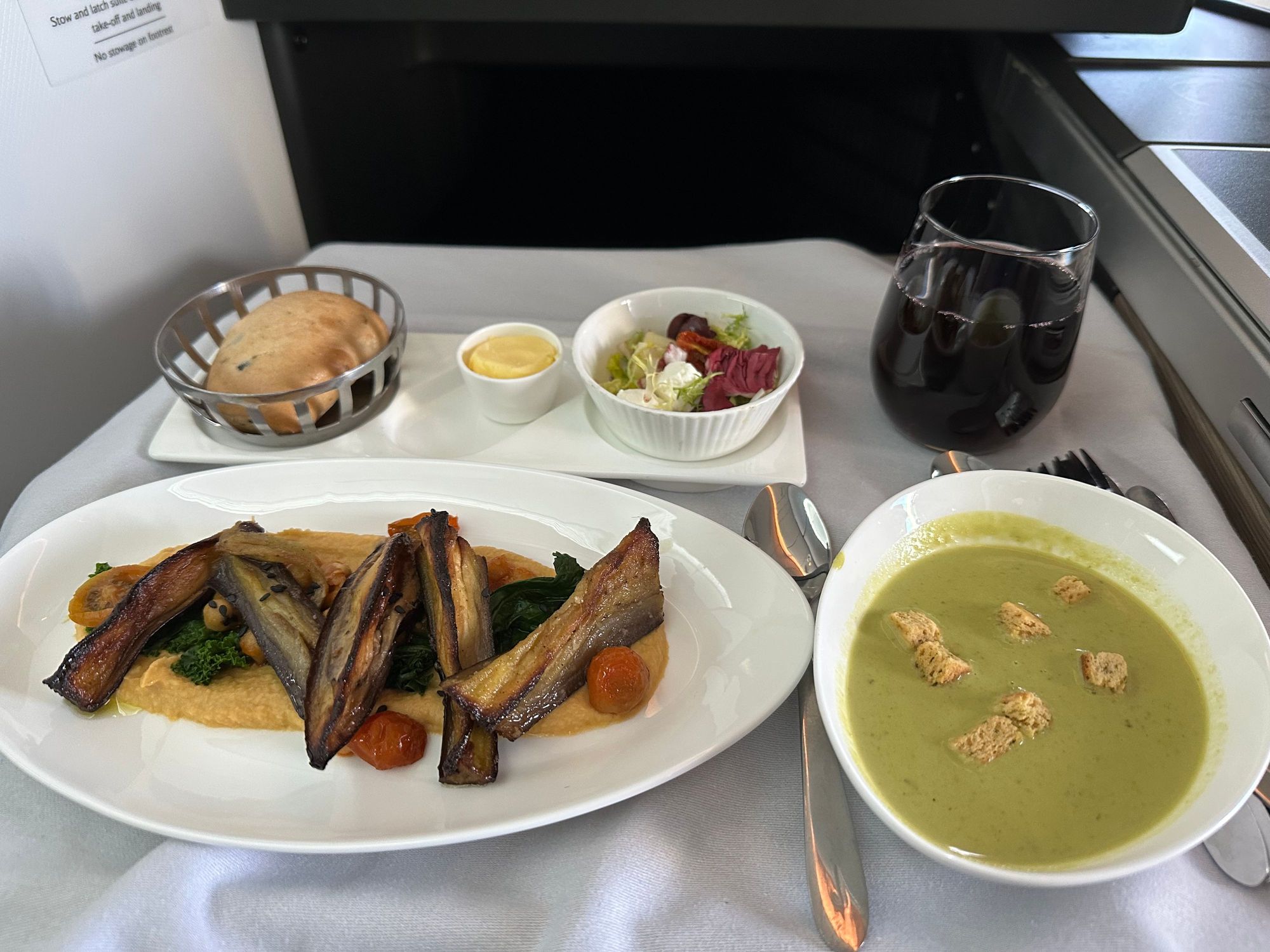 Perfectly fine aubergine starter but the beef is better if you get the choice, and soup a winner. They always give me a very weird reaction when asking for soup and starter, but at least they said yes.