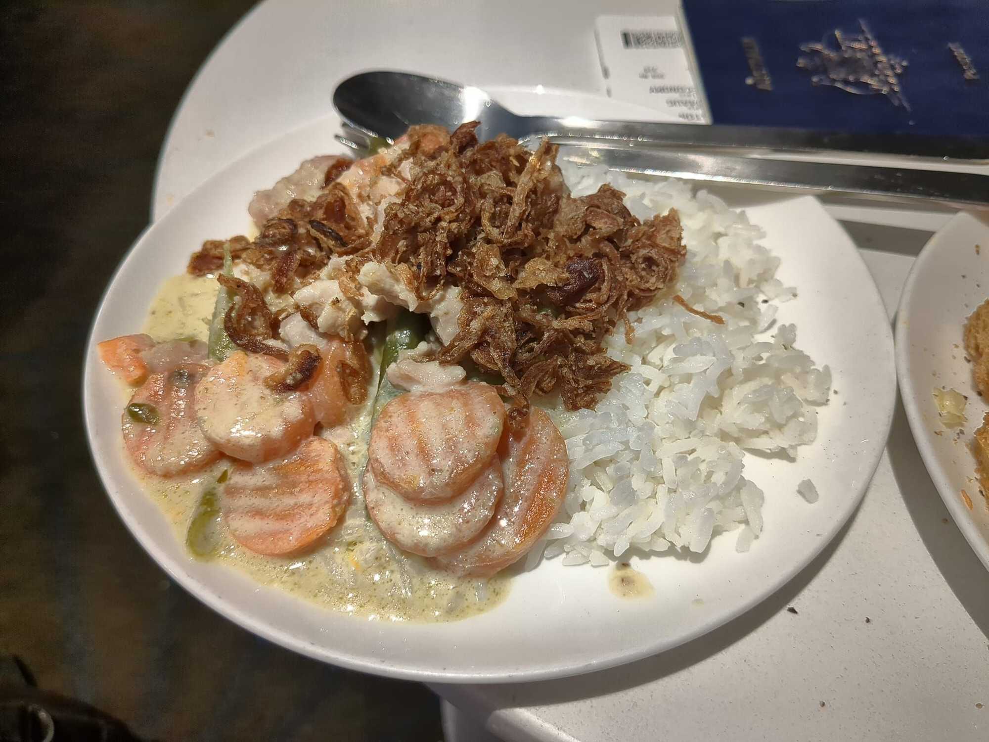The other main dish was a Thai green curry chicken, although as typical of any Asian dish interpreted by The Ponytailed One, the veggies aren't authentic, even if the flavour was pretty good!