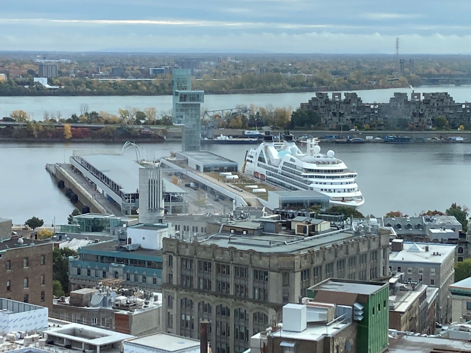 And with a view on the Cruise Terminal and the Seabourn Quest cruise ship: you could walk from the hotel .... but with 3 trunks it is easy but nit when it is raining ....