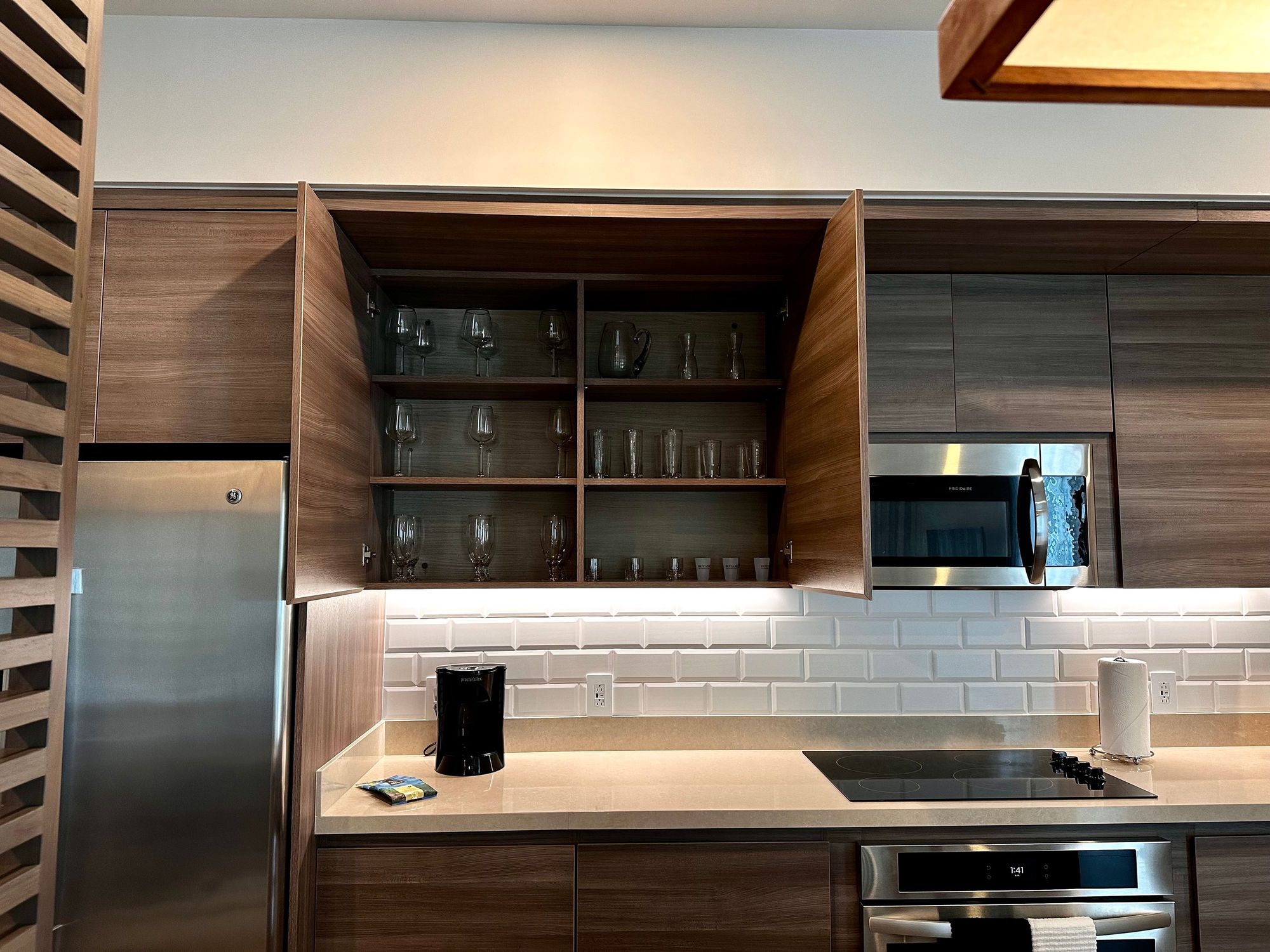 Glassware selection in the suite.