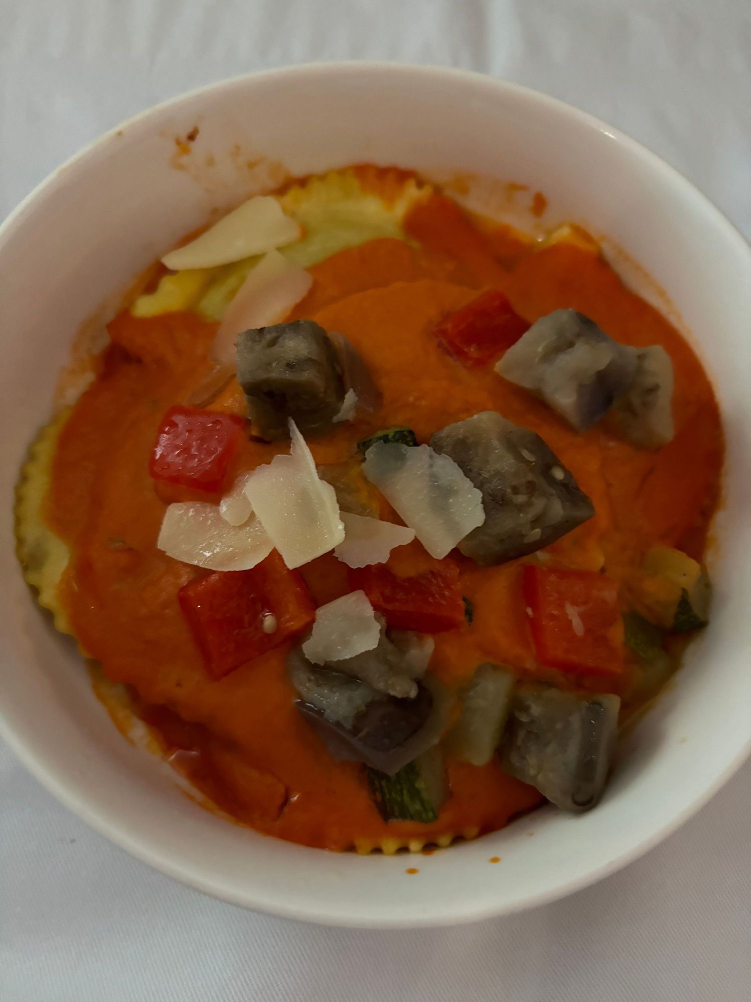 Ravioli - was oddly sweet, past cooked al dente. Eggplant on top was the best part.