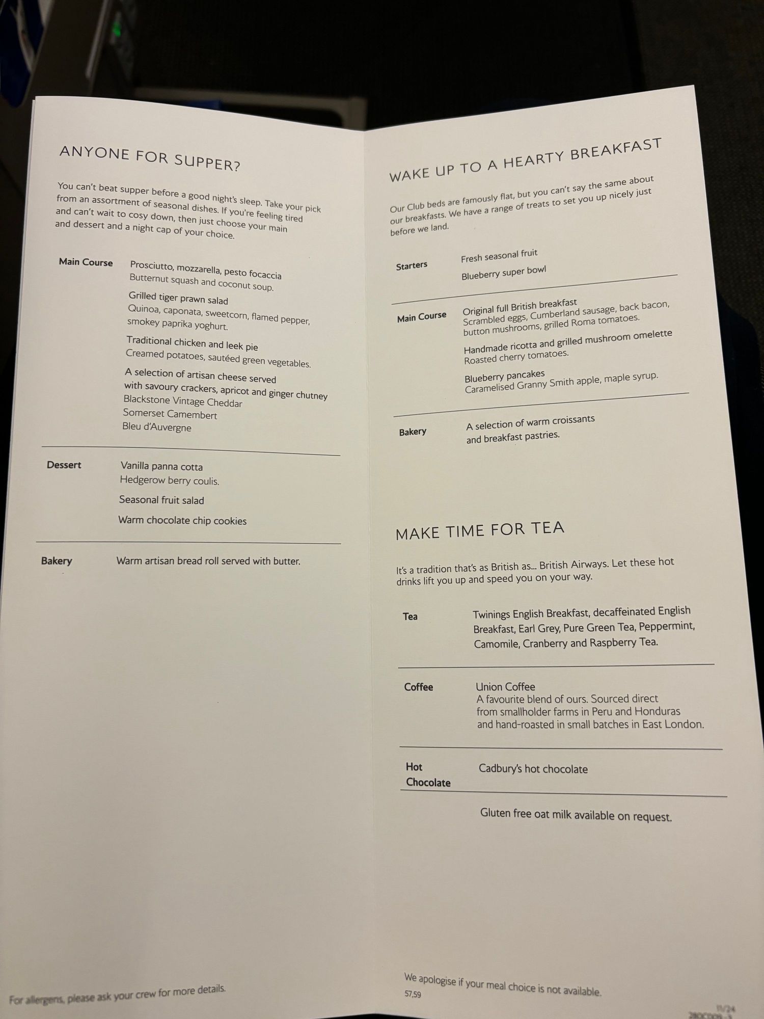 BA57 LHR/JNB 10th November. On time arrival and an engaging crew. I’m sorry that there are no pics but neither of us wanted to eat. I was tempted to try the Whispering Angel Rose but declined. Maybe on our return. Croissants and coffee for breakfast. A good flight. If only I could sleep though!