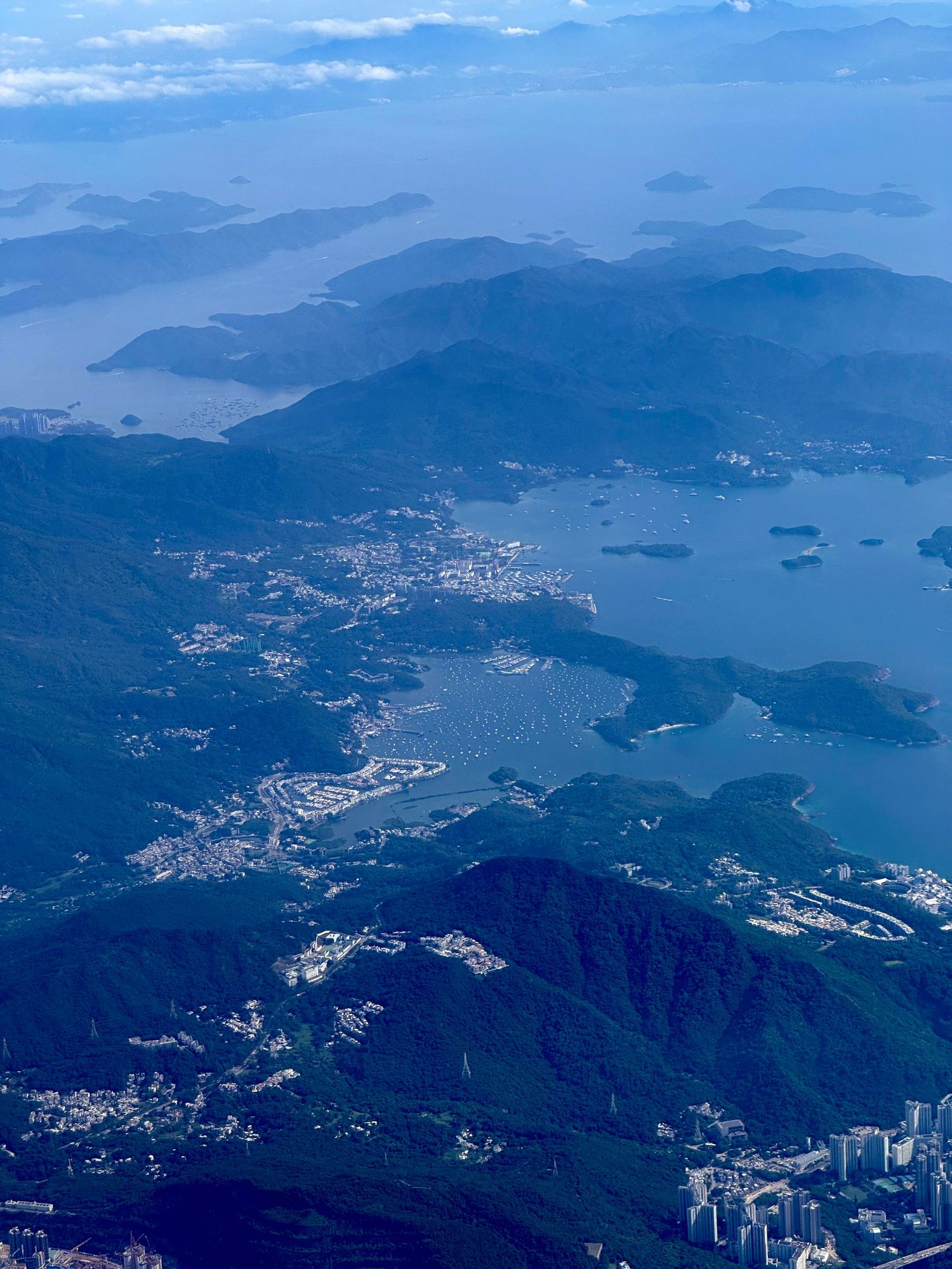 Departing from HKG. Hebe Haven, Sai Kung below. Went to school somewhere there in the '90s.