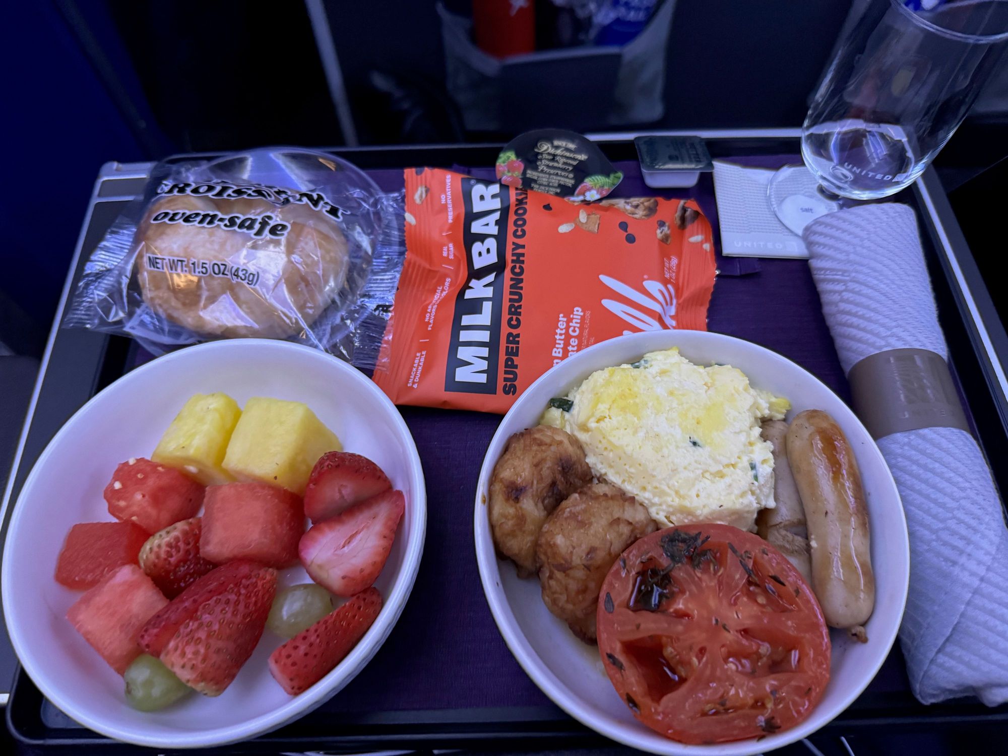 Morning flight first meal. Second option was yogurt and fruit.