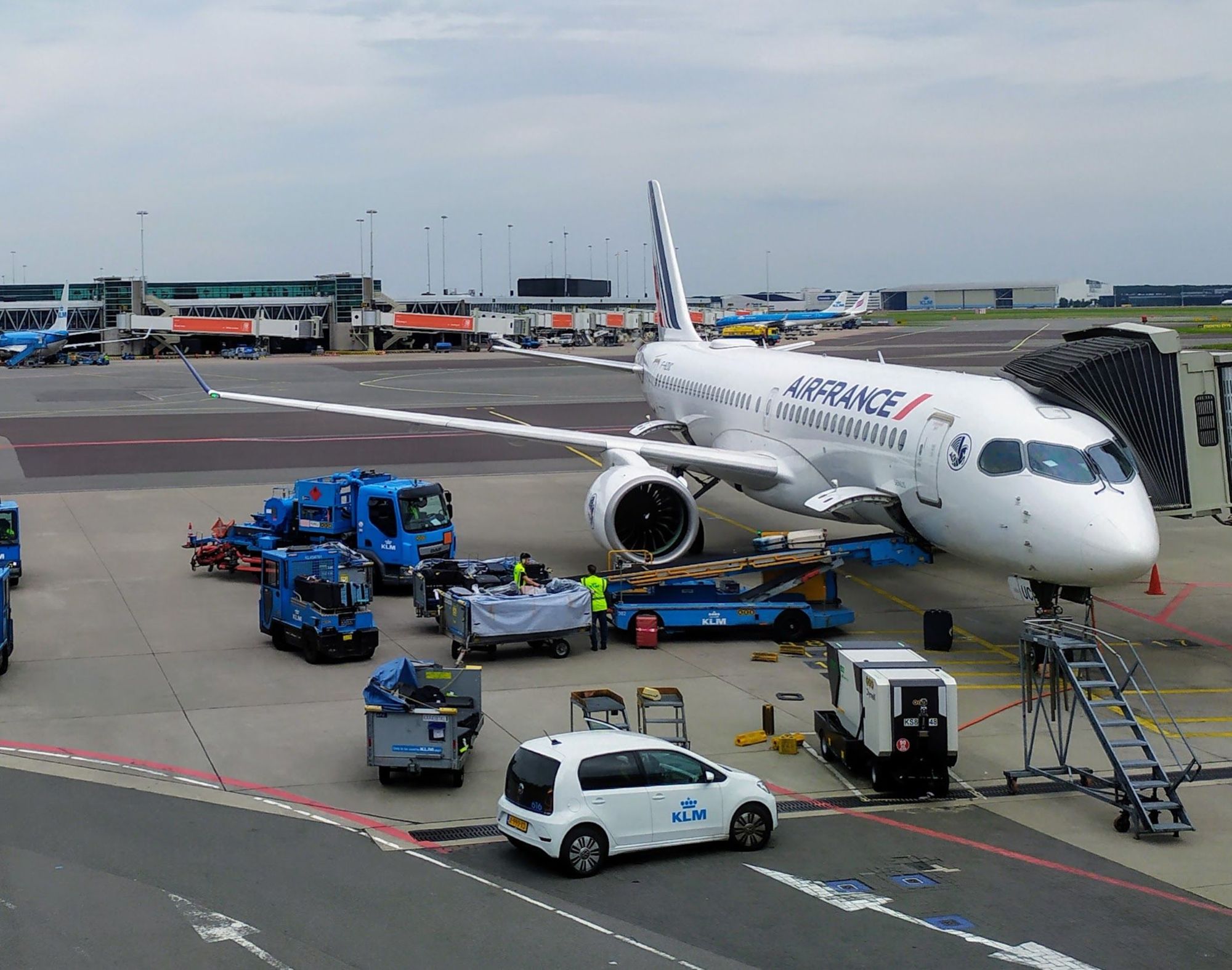 Air France Airbus A220 at the gate at Amsterdam airport