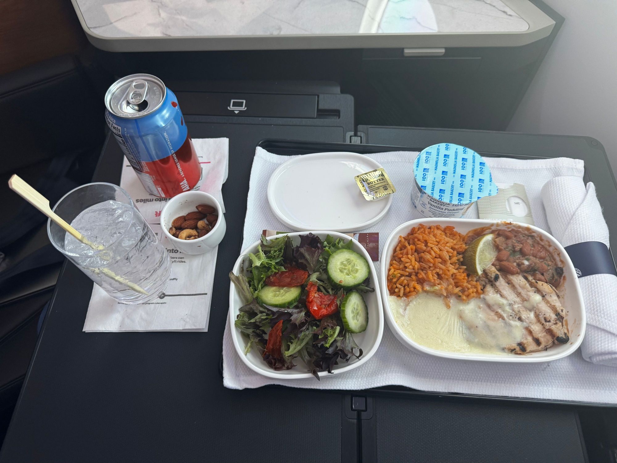 Nuts warm. Chicken was moist. Beans delicious. Wished I had some tortilla chips for the queso. Bread (not pictured) did the trick. Blueberry vanilla pudding not bad.
