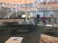 Lounge at reception end. Toilets (clean and new) contained within lounge. Wine station with limited sprits shown on the left.