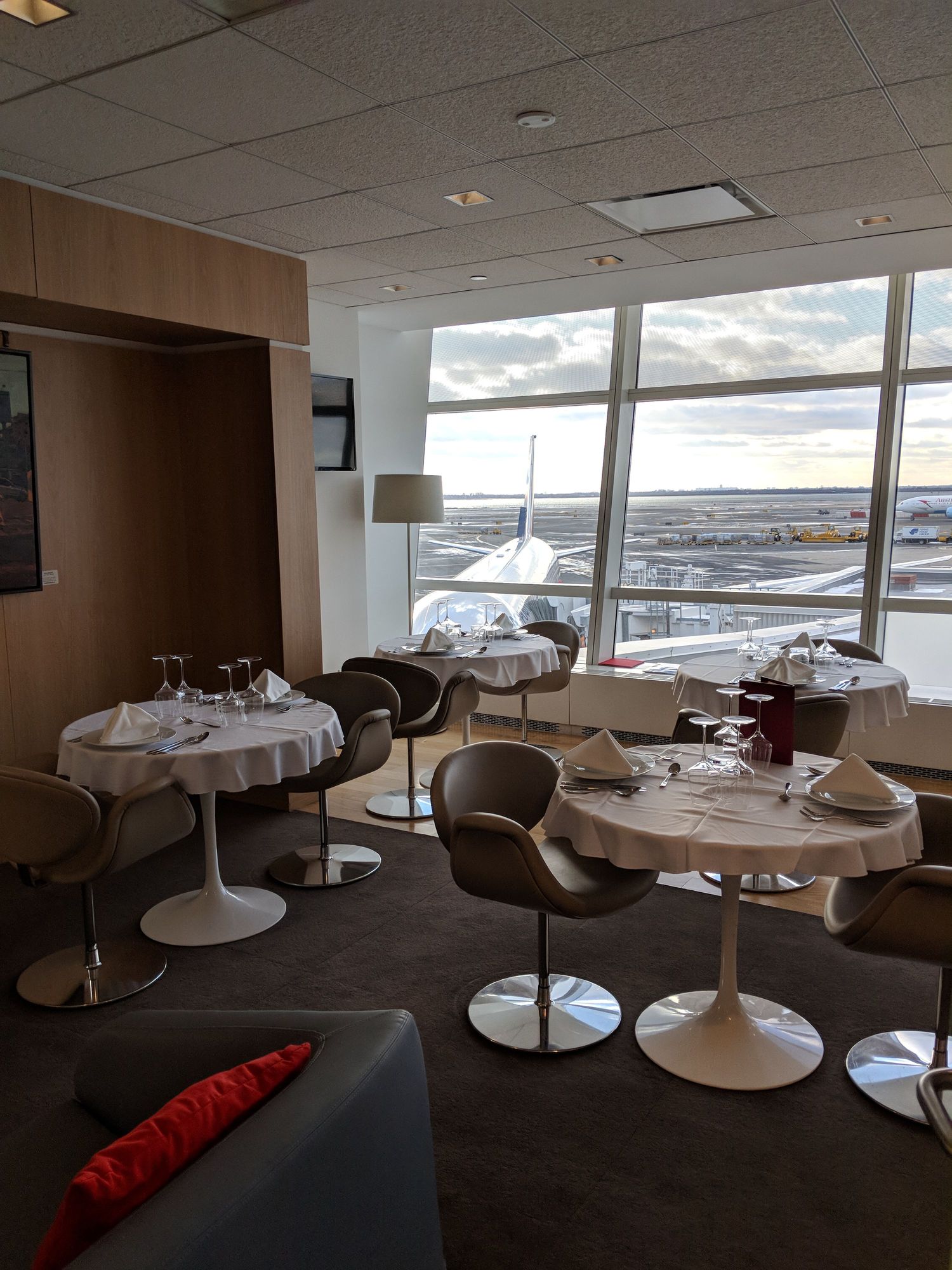 The dining side of the JFK private lounge, and stunning tarmac views!